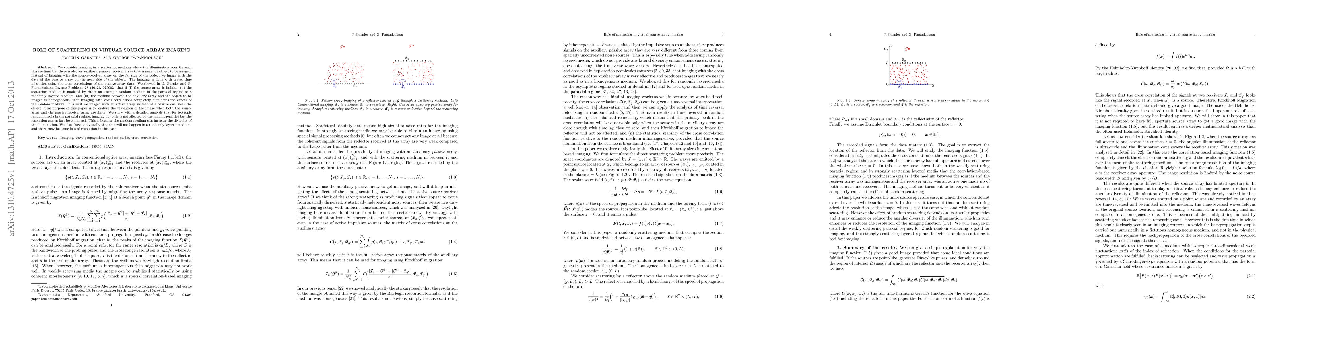 This paper investigates the role of scattering in virtual source array imaging using cross correlations from a passive receiver array near the object. It demonstrates that finite source and receiver arrays can enhance resolution in isotropic random media due to increased illumination diversity, while resolution may decrease in randomly layered media.