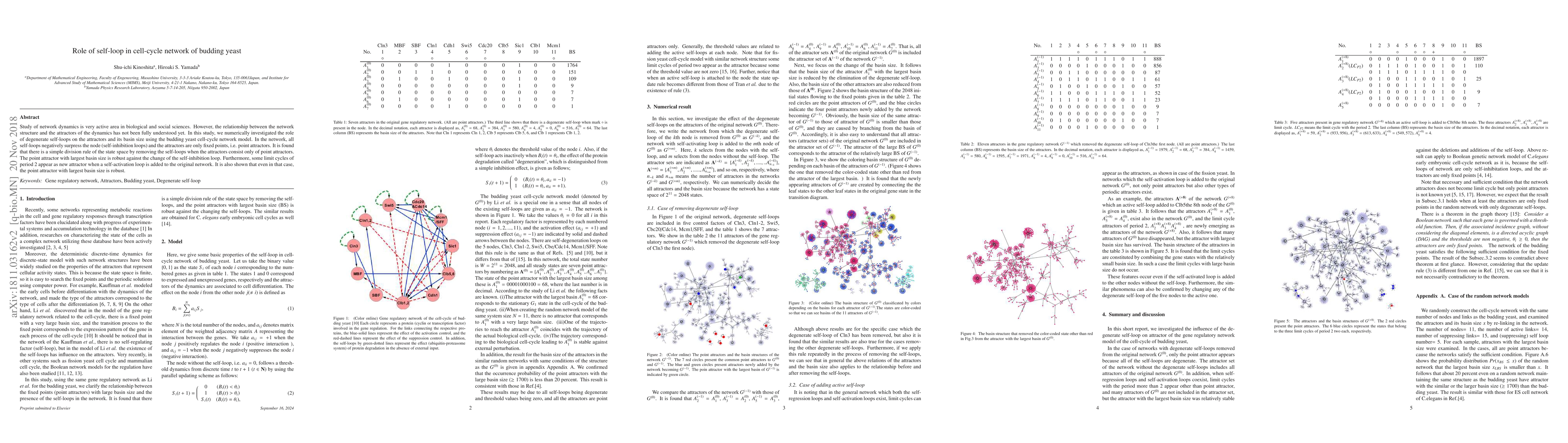 This study numerically investigates the impact of self-loops in the budding yeast cell-cycle network, finding that removing self-loops divides the state space and that the most stable point attractor remains robust. Adding self-activation loops introduces new limit cycles, but the largest basin point attractor remains unaffected.