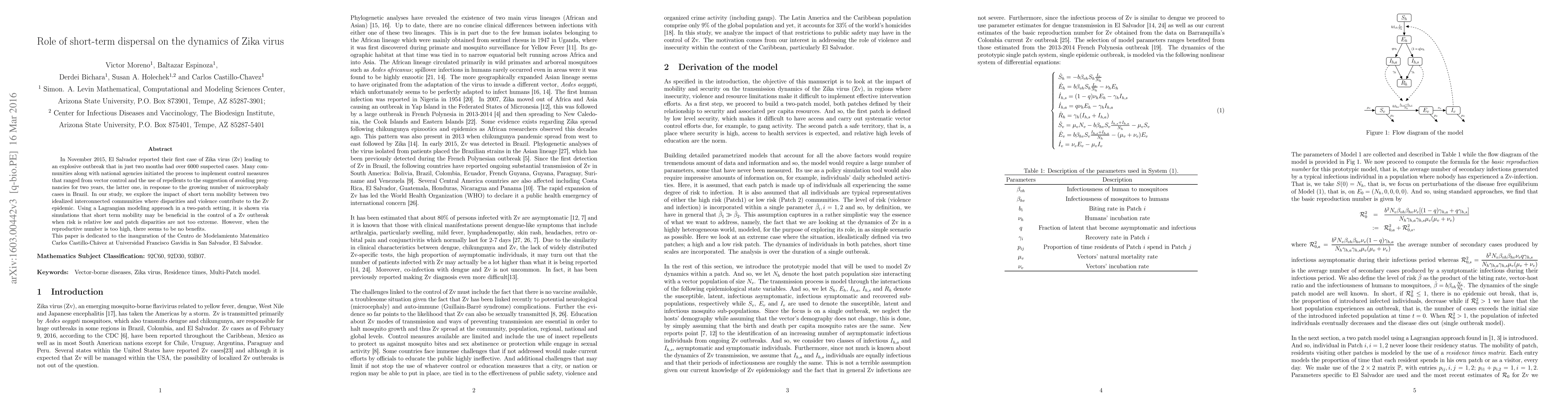The paper introduces a two-patch Lagrangian model to analyze the role of short-term dispersal in Zv outbreak dynamics, providing insights into the interplay between mobility and epidemic spread.