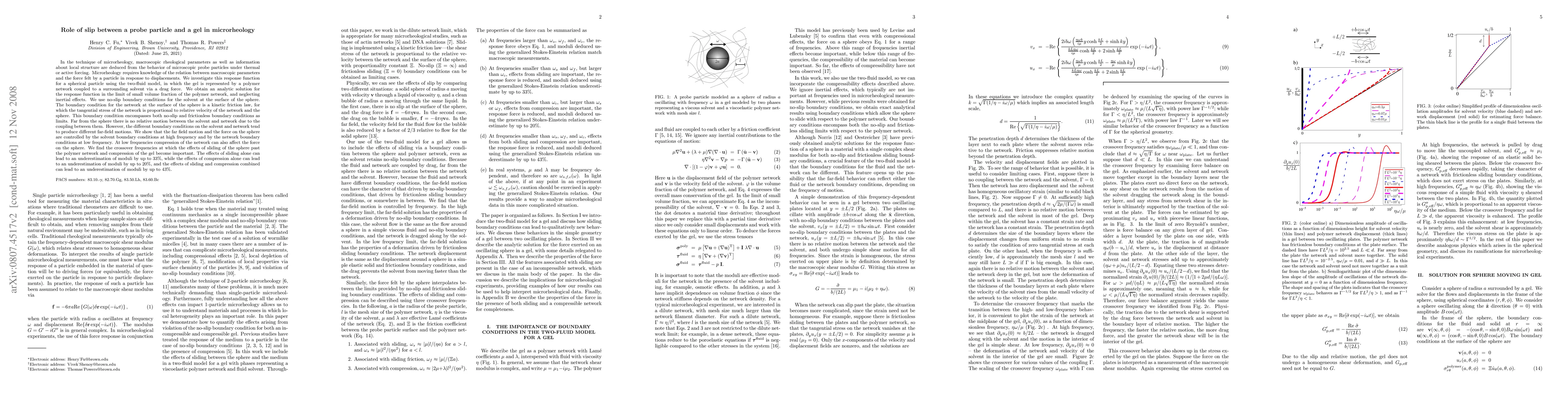 In the technique of microrheology, macroscopic rheological parameters as well as information about local structure are deduced from the behavior of microscopic probe particles under thermal or active forcing. Microrheology requires knowledge of the relation between macroscopic parameters and the force felt by a particle in response to displacements. We investigate this response function for a spherical particle using the two-fluid model, in which the gel is represented by a polymer network coupled to a surrounding solvent via a drag force. We obtain an analytic solution for the response function in the limit of small volume fraction of the polymer network, and neglecting inertial effects. We use no-slip boundary conditions for the solvent at the surface of the sphere. The boundary condition for the network at the surface of the sphere is a kinetic friction law, for which the tangential stress of the network is proportional to relative velocity of the network and the sphere. This boundary condition encompasses both no-slip and frictionless boundary conditions as limits. Far from the sphere there is no relative motion between the solvent and network due to the coupling between them. However, the different boundary conditions on the solvent and network tend to produce different far-field motions. We show that the far field motion and the force on the sphere are controlled by the solvent boundary conditions at high frequency and by the network boundary conditions at low frequency. At low frequencies compression of the network can also affect the force on the sphere. We find the crossover frequencies at which the effects of sliding of the sphere past the polymer network and compression of the gel become important.