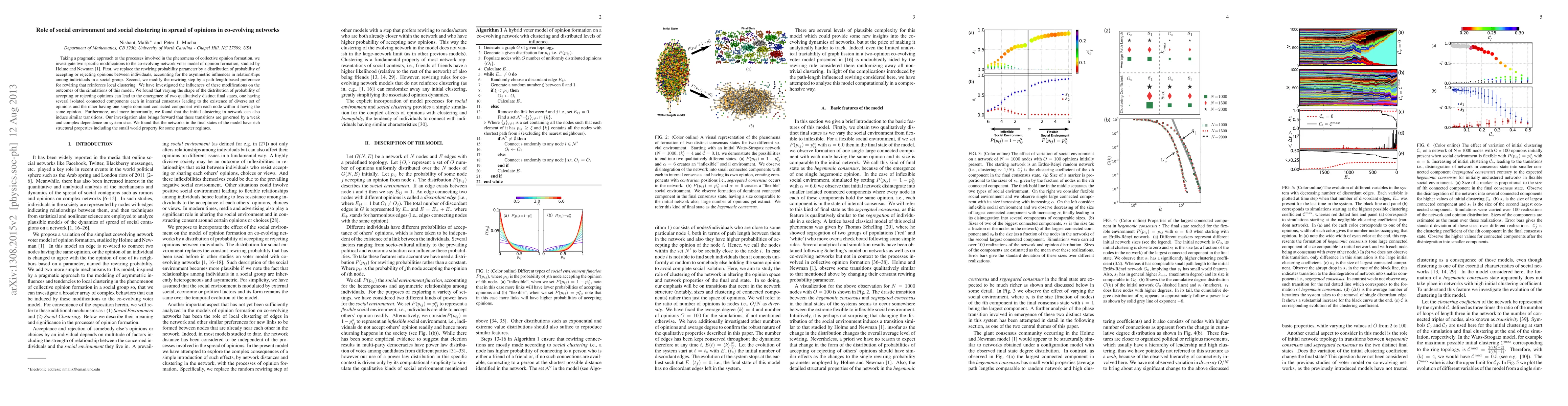 Taking a pragmatic approach to the processes involved in the phenomena of collective opinion formation, we investigate two specific modifications to the co-evolving network voter model of opinion formation, studied by Holme and Newman [1]. First, we replace the rewiring probability parameter by a distribution of probability of accepting or rejecting opinions between individuals, accounting for the asymmetric influences in relationships among individuals in a social group. Second, we modify the rewiring step by a path-length-based preference for rewiring that reinforces local clustering. We have investigated the influences of these modifications on the outcomes of the simulations of this model. We found that varying the shape of the distribution of probability of accepting or rejecting opinions can lead to the emergence of two qualitatively distinct final states, one having several isolated connected components each in internal consensus leading to the existence of diverse set of opinions and the other having one single dominant connected component with each node within it having the same opinion. Furthermore, and more importantly, we found that the initial clustering in network can also induce similar transitions. Our investigation also brings forward that these transitions are governed by a weak and complex dependence on system size. We found that the networks in the final states of the model have rich structural properties including the small world property for some parameter regimes. [1] P. Holme and M. Newman, Phys. Rev. E 74, 056108 (2006).