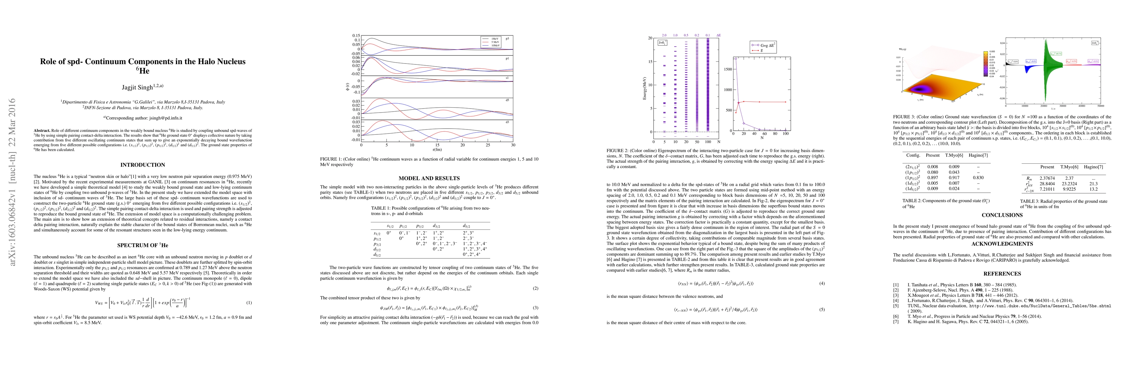 Role of different continuum components in the weakly bound nucleus 6He is studied by coupling unbound spd-waves of 5He by using simple pairing contact-delta interaction. The results show that 6He ground state $0^+$ displays collective nature by taking contribution from five different oscillating continuum states that sum up to give an exponentially decaying bound wavefunction emerging from five different possible configurations i.e. $(s_{1/2})^2$, $(p_{1/2})^2$, $(p_{3/2})^2$, $(d_{3/2})^2$ and $(d_{5/2})^2$. The ground state properties of 6He has been calculated.