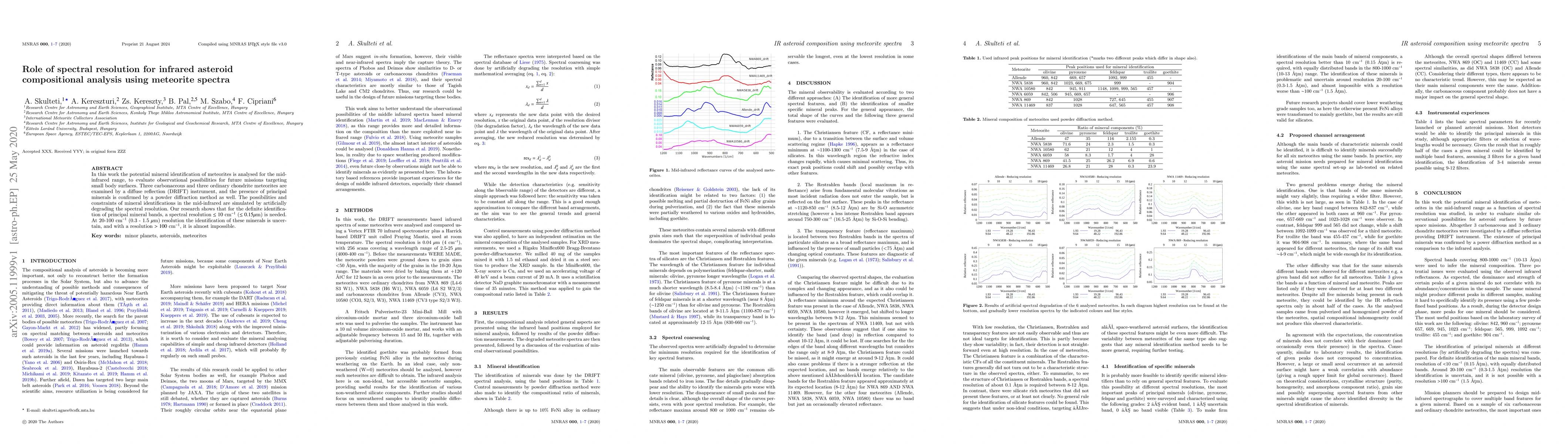 This study investigates the identification of principal minerals in meteorites using mid-infrared spectra, finding that a spectral resolution of at least 10 cm$^{-1}$ is necessary for definitive identification. Lower resolutions lead to uncertain or nearly impossible mineral identification.