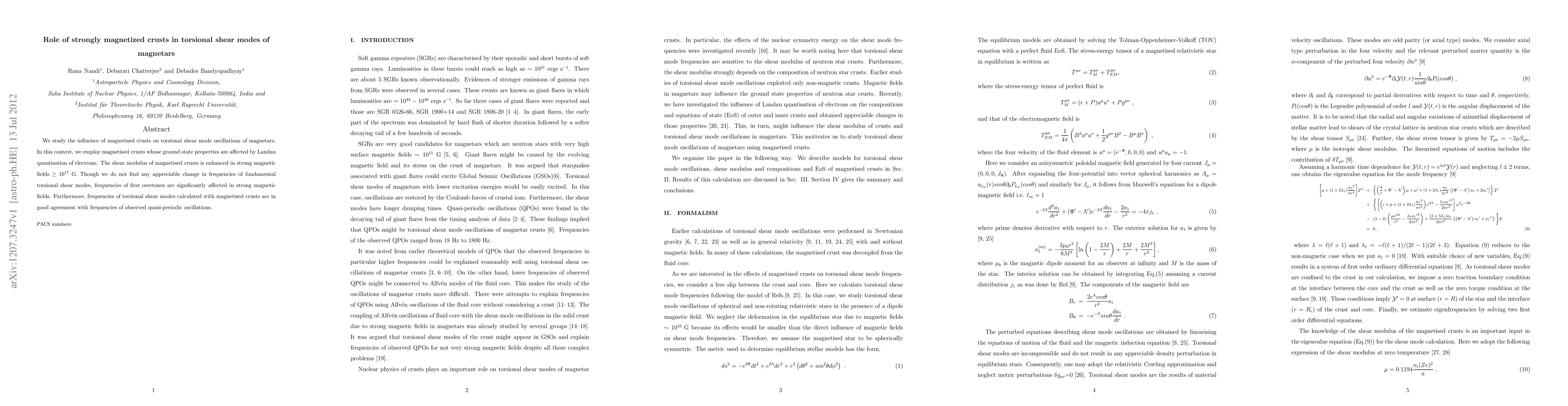This paper investigates the impact of strongly magnetized crusts on torsional shear modes in magnetars, finding that while fundamental mode frequencies remain unchanged, first overtone frequencies are significantly affected by strong magnetic fields. The study shows good agreement between calculated and observed quasi-periodic oscillation frequencies.