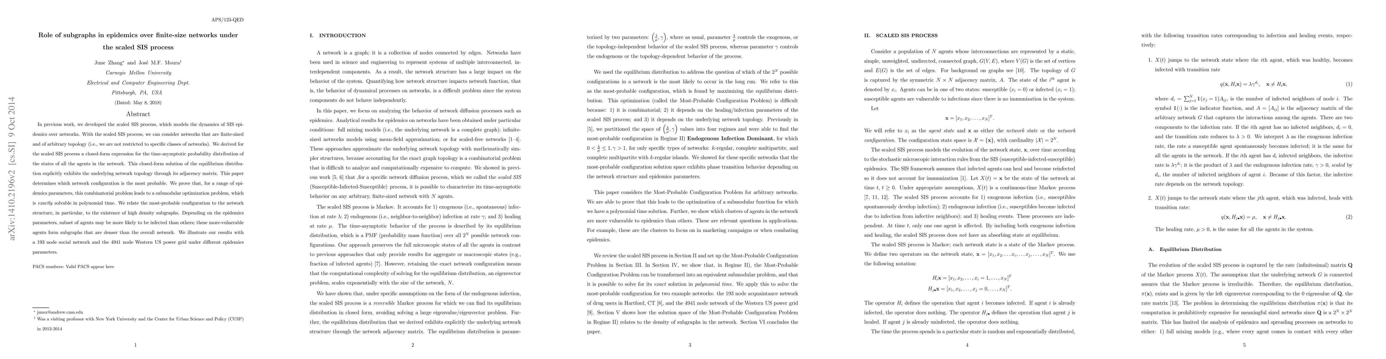 This paper explores the scaled SIS process for epidemic modeling on finite-sized networks, deriving a closed-form expression for the equilibrium distribution. It identifies the most probable network configuration, showing that high-density subgraphs play a key role in determining infection vulnerability.