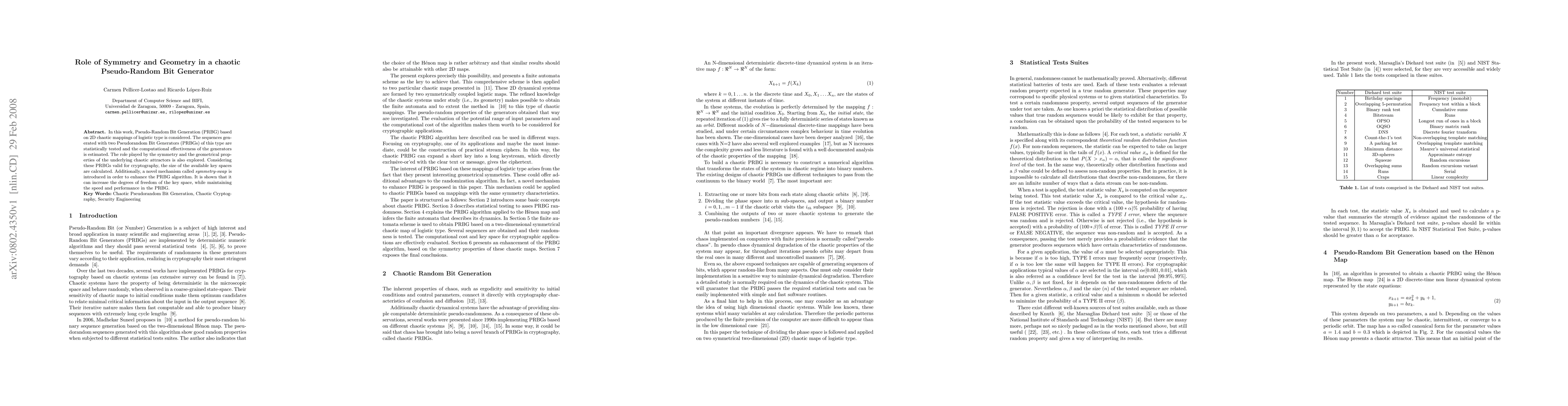 In this work, Pseudo-Random Bit Generation (PRBG) based on 2D chaotic mappings of logistic type is considered. The sequences generated with two Pseudorandom Bit Generators (PRBGs) of this type are statistically tested and the computational effectiveness of the generators is estimated. The role played by the symmetry and the geometrical properties of the underlying chaotic attractors is also explored. Considering these PRBGs valid for cryptography, the size of the available key spaces are calculated. Additionally, a novel mechanism called 'symmetry-swap' is introduced in order to enhance the PRBG algorithm. It is shown that it can increase the degrees of freedom of the key space, while maintaining the speed and performance in the PRBG.