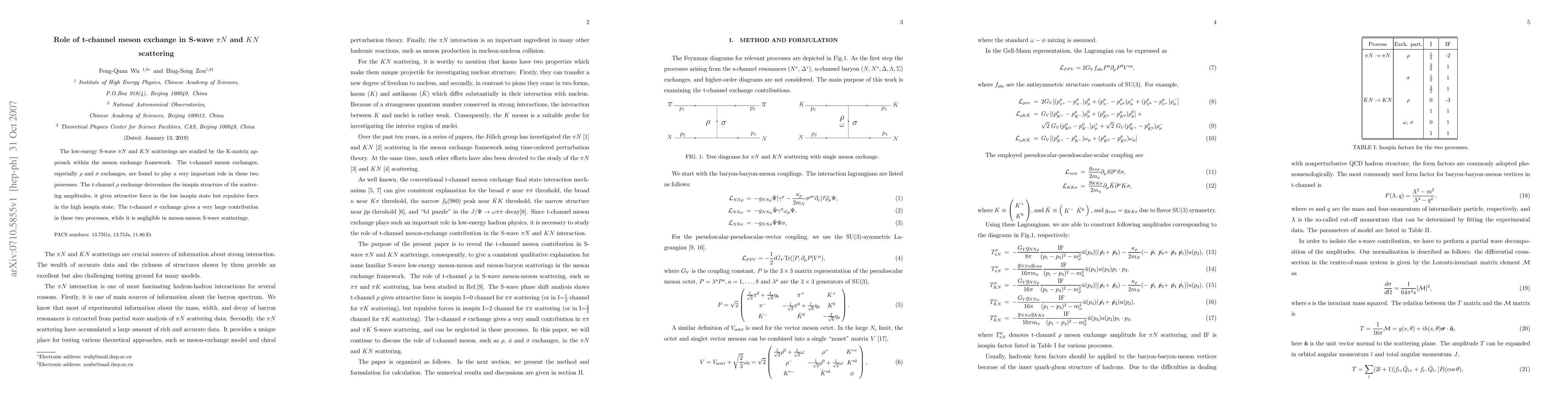 This study investigates low-energy S-wave pi N and K N scatterings using the K-matrix approach, highlighting the significant role of t-channel meson exchanges, particularly rho and sigma, in determining the scattering amplitudes' isospin structure and overall interaction forces.