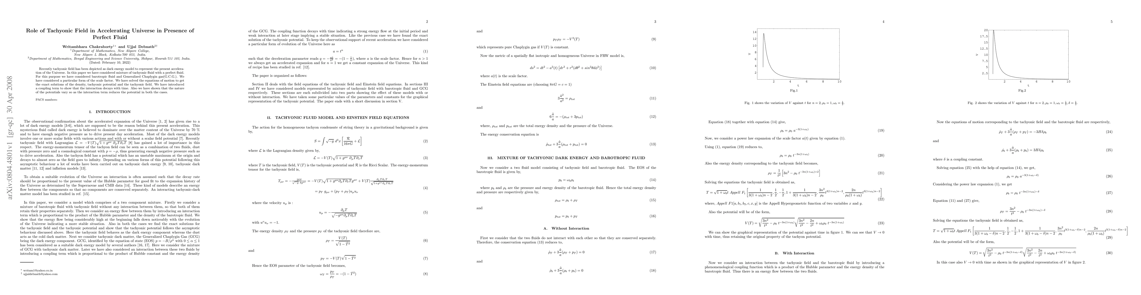 This paper explores the role of a tachyonic field as a dark energy model in an accelerating universe, considering its mixture with perfect fluids like barotropic fluid and Generalized Chaplygin gas. Exact solutions for density, potential, and field are derived, showing that interaction decays over time, reducing the potential and influencing the universe's acceleration.