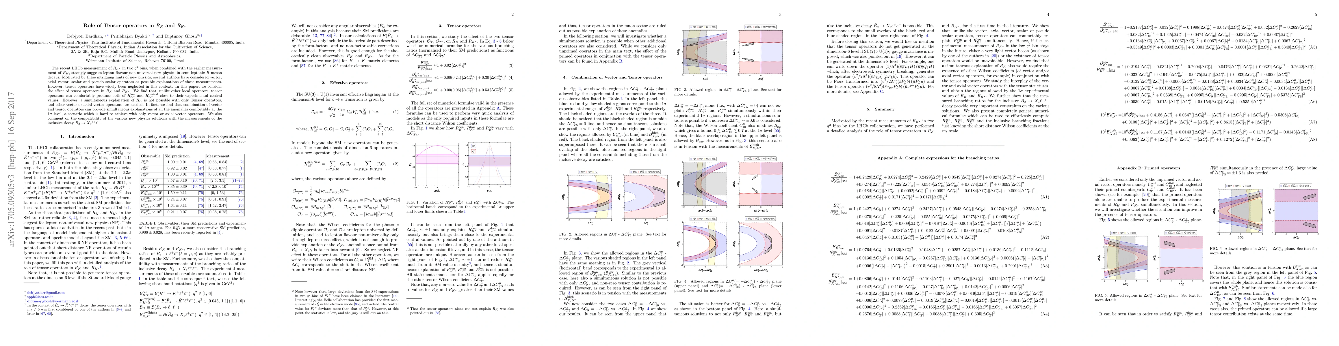 This paper investigates the impact of tensor operators on the $R_K$ and $R_{K^*}$ anomalies in semi-leptonic $B$ meson decays, finding that tensor operators can explain $R_{K^*}$ anomalies but not $R_K$ alone. A combination of vector and tensor operators can simultaneously address both anomalies at the $1 \sigma$ level, offering a more viable solution than vector or axial vector operators alone.