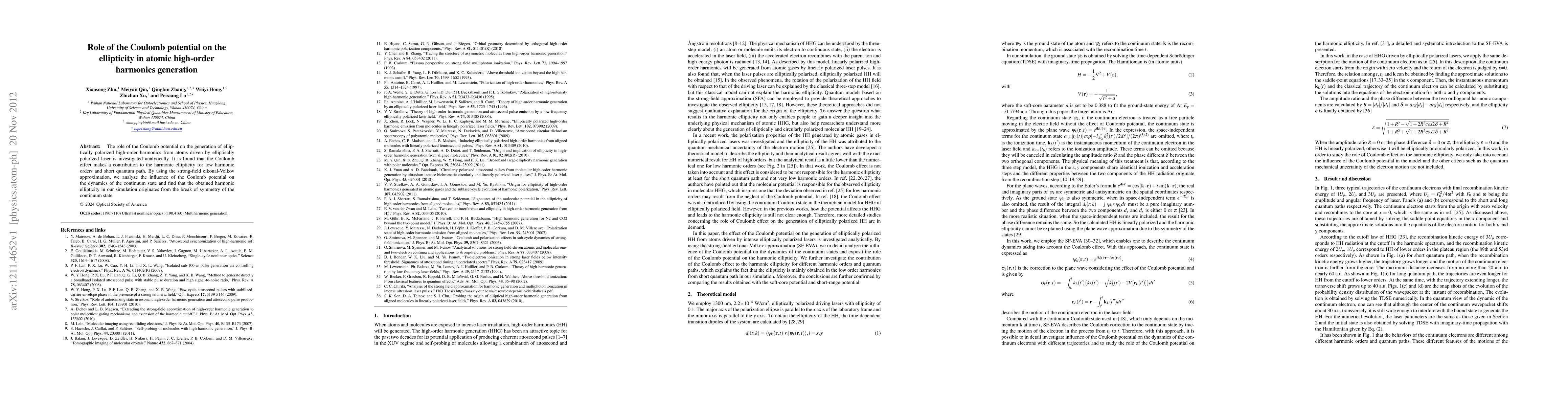 Summary: The study analytically investigates the impact of the Coulomb potential on elliptically polarized high-order harmonics from atoms driven by elliptically polarized lasers, revealing that the Coulomb effect significantly influences harmonic ellipticity at low orders and short quantum paths. The strong-field eikonal-Volkov approximation shows that the resulting harmonic ellipticity stems from the symmetry break in the continuum state dynamics.