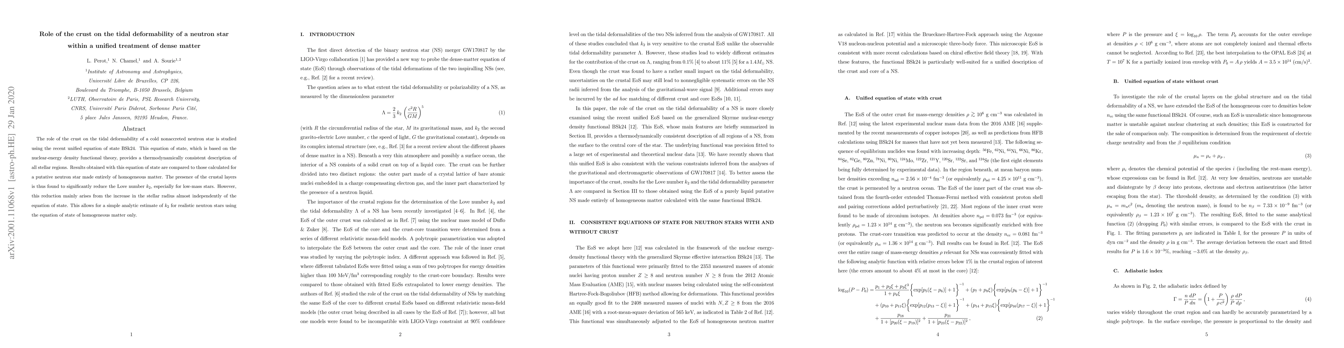 The role of the crust on the tidal deformability of a cold nonaccreted neutron star is studied using the recent unified equation of state BSk24. This equation of state, which is based on the nuclear-energy density functional theory, provides a thermodynamically consistent description of all stellar regions. Results obtained with this equation of state are compared to those calculated for a putative neutron star made entirely of homogeneous matter. The presence of the crustal layers is thus found to significantly reduce the Love number $k_2$, especially for low-mass stars. However, this reduction mainly arises from the increase in the stellar radius almost independently of the equation of state. This allows for a simple analytic estimate of $k_2$ for realistic neutron stars using the equation of state of homogeneous matter only.