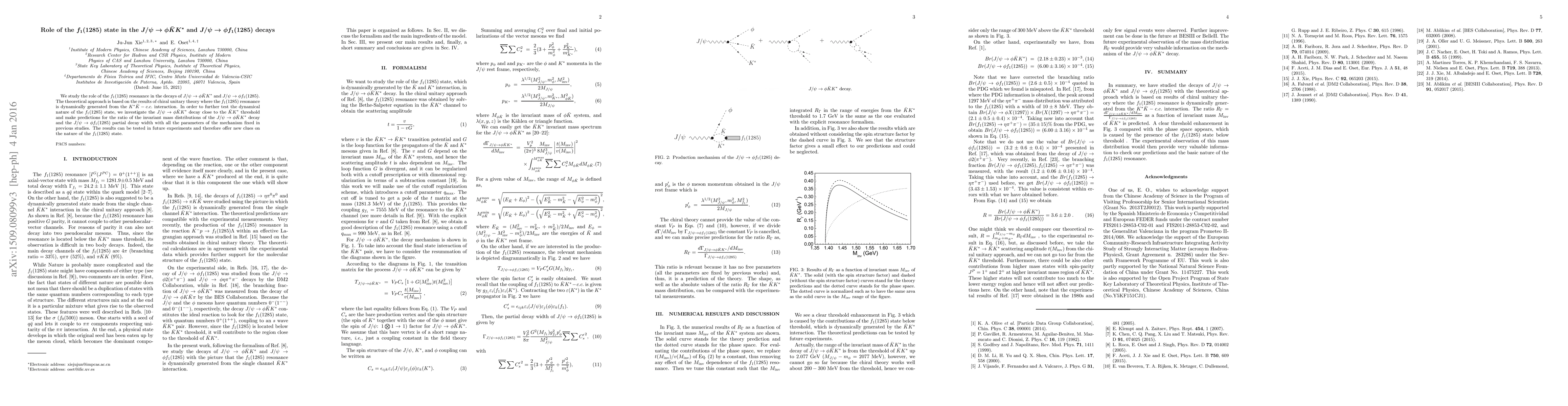This paper explores the role of the $f_1(1285)$ resonance in $J/\psi$ decays to $\phi \bar{K} K^*$ and $\phi f_1(1285)$ using chiral unitary theory, predicting the ratio of their invariant mass distributions to test the dynamical nature of the $f_1(1285)$ state. Future experimental validation could provide new insights into this resonance.