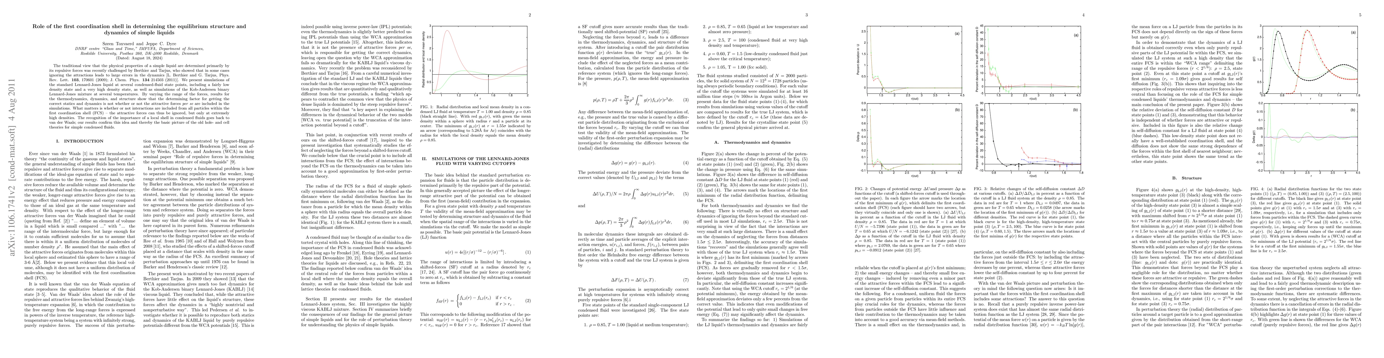 This paper demonstrates that the equilibrium structure and dynamics of simple liquids are primarily determined by interactions within the first coordination shell, challenging the traditional view that repulsive forces alone dictate these properties. Simulations show that while attractive forces can be ignored, interactions from all particles within the first coordination shell are crucial for accurate results, especially at high densities.