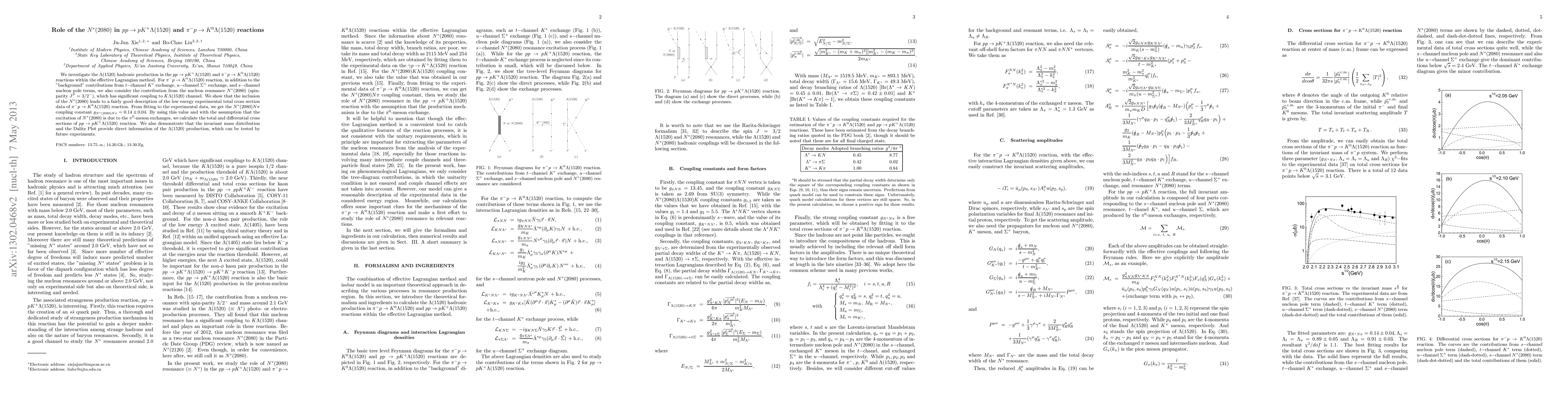This paper investigates the production of $\Lambda(1520)$ in $pp$ and $\pi^-p$ reactions, focusing on the role of the $N^*(2080)$ resonance. The inclusion of $N^*(2080)$ significantly improves the description of experimental data for $\pi^- p \to K^0 \Lambda(1520)$, leading to a coupling constant $g_{N^*(2080)N \pi} = 0.14 \pm 0.04$.