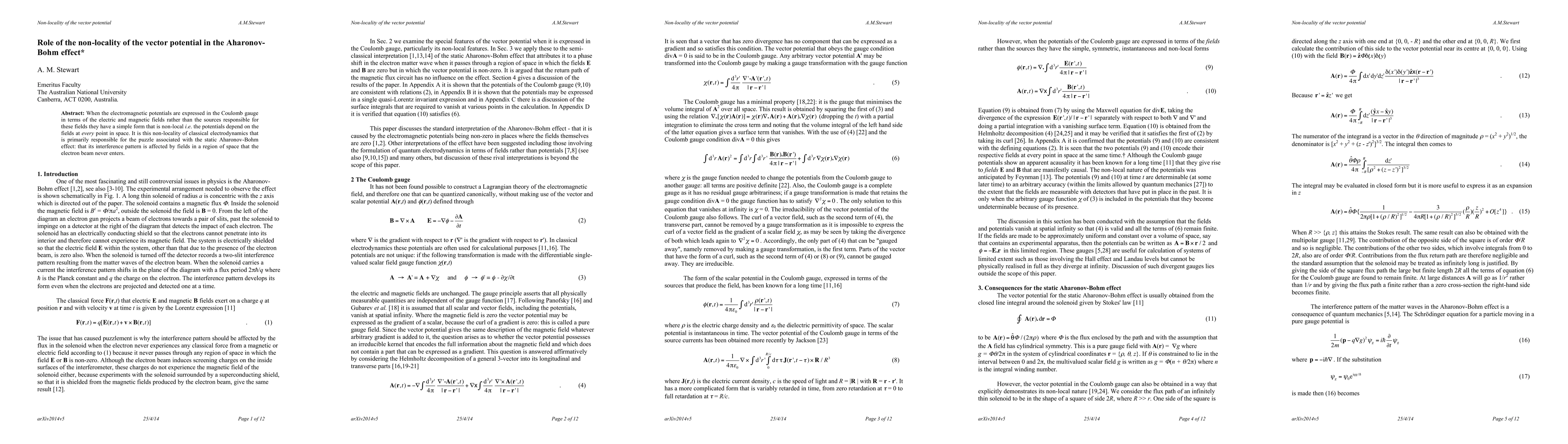 When the electromagnetic potentials are expressed in the Coulomb gauge in terms of the electric and magnetic fields rather than the sources responsible for these fields they have a simple form that is non-local i.e. the potentials depend on the fields at every point in space. It is this non-locality of classical electrodynamics that is at first instance responsible for the puzzle associated with the Aharonov-Bohm effect: that its interference pattern is affected by fields in a region of space that the electron beam never enters.
