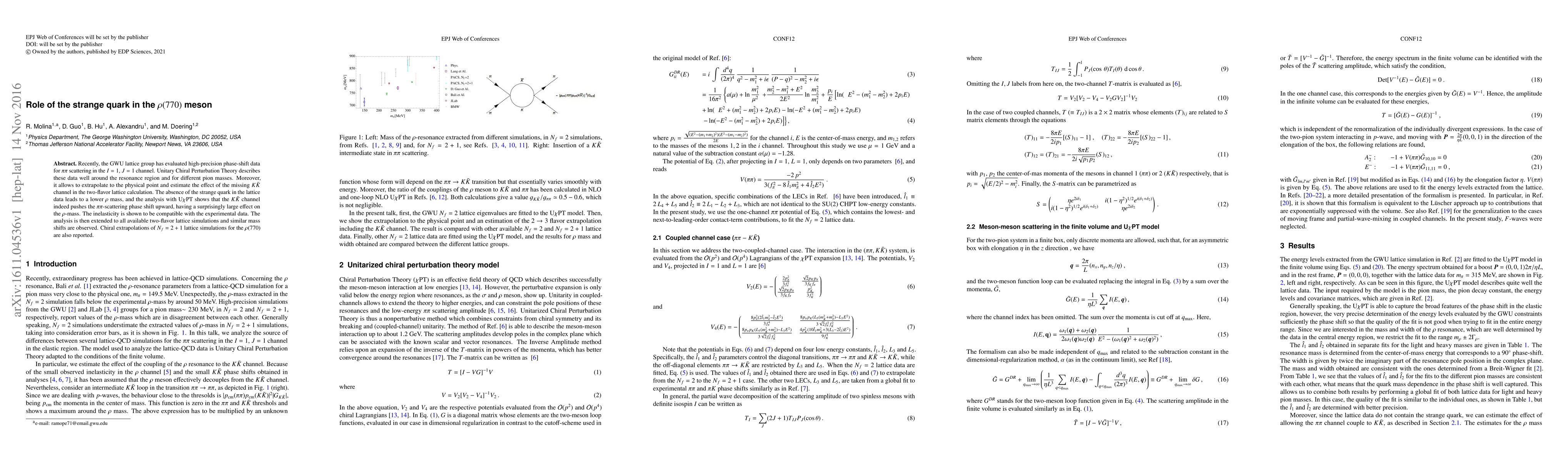 Recently, the GWU lattice group has evaluated high-precision phase-shift data for $\pi\pi$ scattering in the $I = 1$, $J = 1$ channel. Unitary Chiral Perturbation Theory describes these data well around the resonance region and for different pion masses. Moreover, it allows to extrapolate to the physical point and estimate the effect of the missing $K\bar{K}$ channel in the two-flavor lattice calculation. The absence of the strange quark in the lattice data leads to a lower $\rho$ mass, and the analysis with U$\chi$PT shows that the $K \bar{K}$ channel indeed pushes the $\pi\pi$-scattering phase shift upward, having a surprisingly large effect on the $\rho$-mass. The inelasticity is shown to be compatible with the experimental data. The analysis is then extended to all available two-flavor lattice simulations and similar mass shifts are observed. Chiral extrapolations of $N_f = 2 + 1$ lattice simulations for the $\rho(770)$ are also reported.