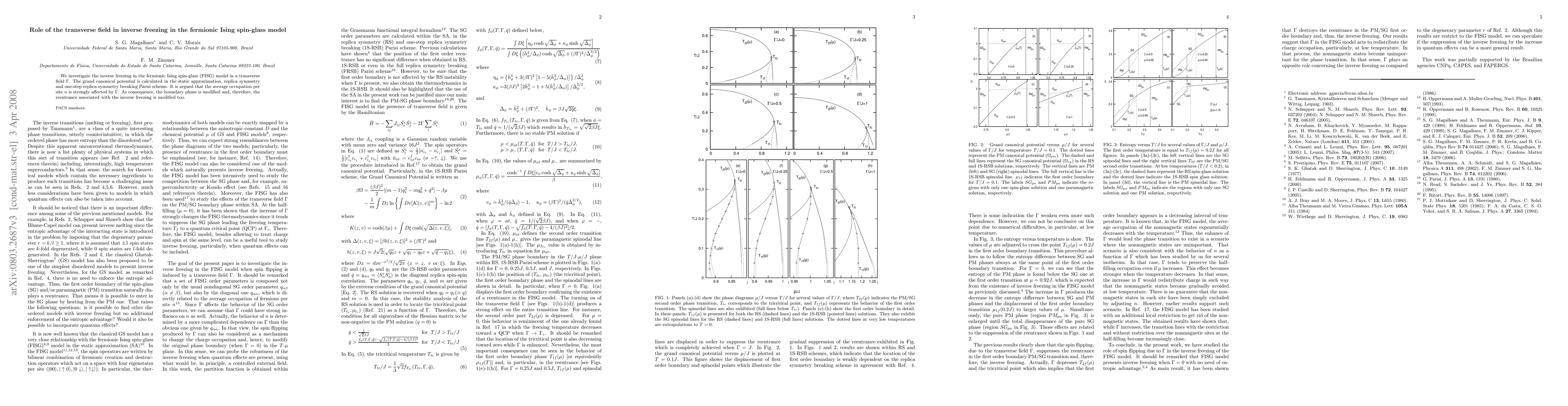 This paper examines the impact of a transverse field on inverse freezing in the fermionic Ising spin-glass model, finding that the average occupation per site $n$ is significantly influenced by the field $\Gamma$, which in turn modifies the boundary phase and the reentrance phenomenon associated with inverse freezing.