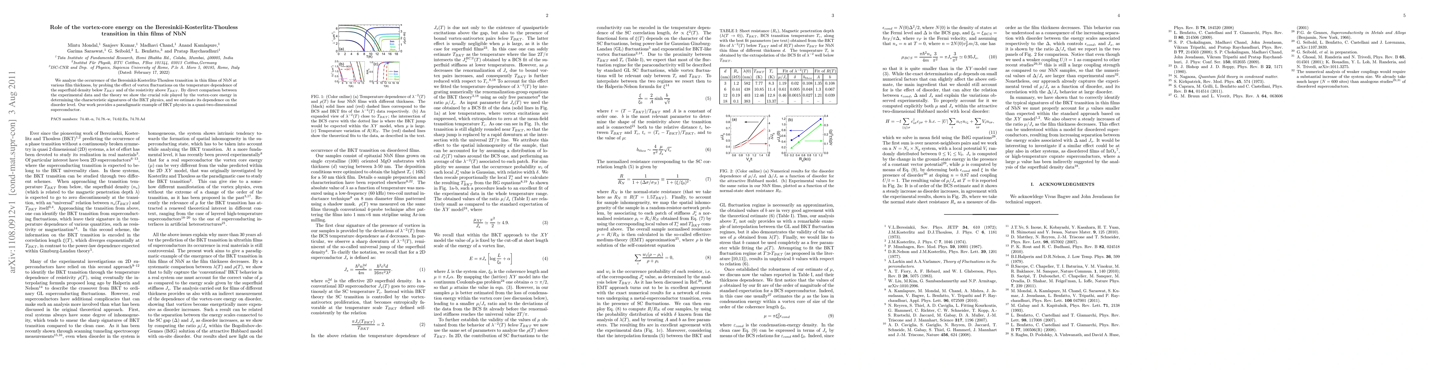 This paper investigates the Beresinkii-Kosterlitz-Thouless (BKT) transition in thin NbN films, focusing on how vortex-core energy influences the transition. The study reveals the critical role of vortex-core energy in defining BKT transition signatures and its dependence on disorder levels.