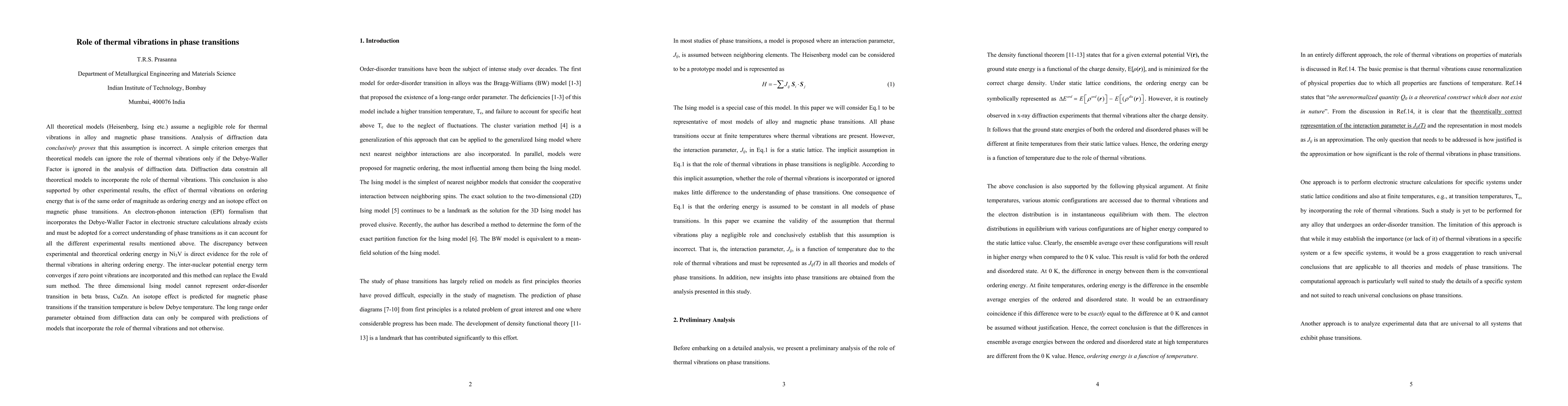 All theoretical models (Heisenberg, Ising etc.) assume a negligible role for thermal vibrations in alloy and magnetic phase transitions. Analysis of diffraction data conclusively proves that this assumption is incorrect. A simple criterion emerges that theoretical models can ignore the role of thermal vibrations only if the Debye-Waller Factor is ignored in the analysis of diffraction data. Diffraction data constrain all theoretical models to incorporate the role of thermal vibrations. This conclusion is also supported by other experimental results, the effect of thermal vibrations on ordering energy that is of the same order of magnitude as ordering energy and an isotope effect on magnetic phase transitions. An electron-phonon interaction (EPI) formalism that incorporates the Debye-Waller Factor in electronic structure calculations already exists and must be adopted for a correct understanding of phase transitions as it can account for all the different experimental results mentioned above. The discrepancy between experimental and theoretical ordering energy in Ni3V is direct evidence for the role of thermal vibrations in altering ordering energy. The inter-nuclear potential energy term converges if zero point vibrations are incorporated and this method can replace the Ewald sum method. The three dimensional Ising model cannot represent order-disorder transition in beta brass, CuZn. An isotope effect is predicted for magnetic phase transitions if the transition temperature is below Debye temperature. The long range order parameter obtained from diffraction data can only be compared with predictions of models that incorporate the role of thermal vibrations and not otherwise.
