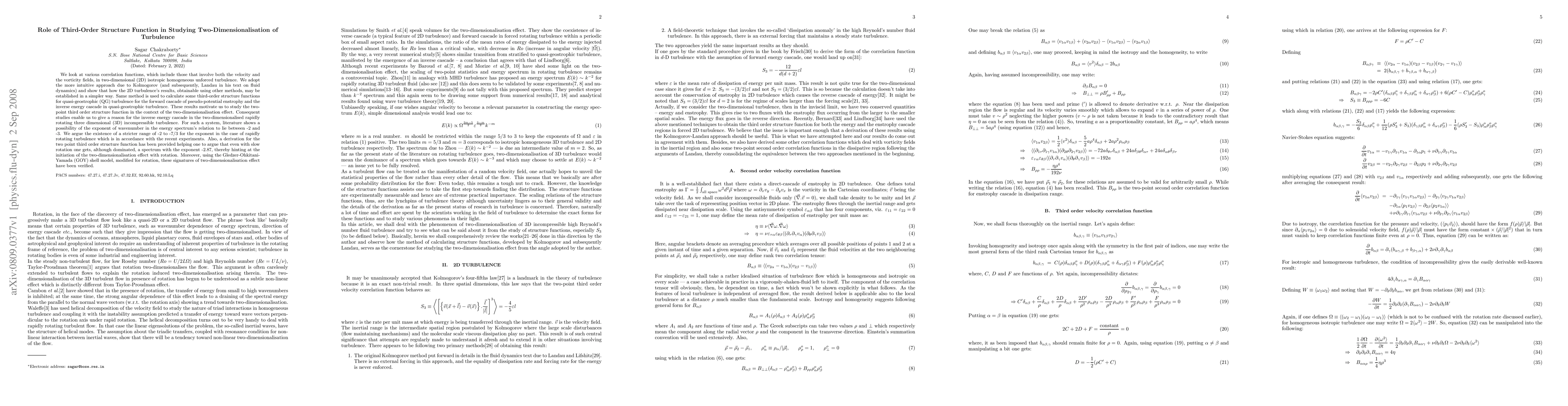 This paper explores the role of third-order structure functions in understanding the two-dimensionalisation of turbulence, showing how the inverse energy cascade in quasi-geostrophic turbulence can be explained through these functions. The study provides a stricter range for the wavenumber exponent in rapidly rotating turbulence, aligning with recent experimental findings.
