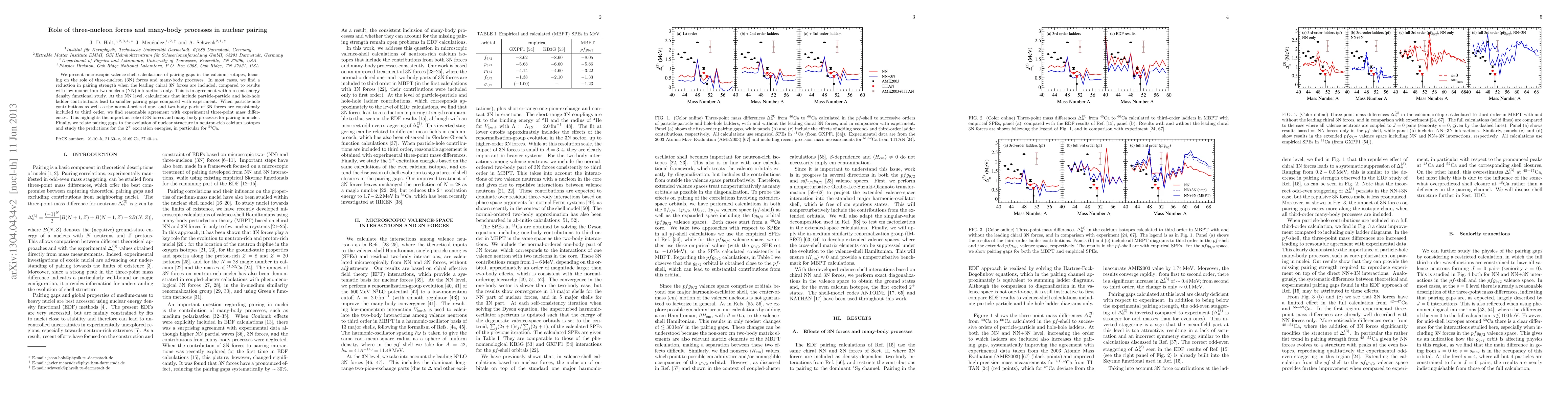 This study investigates the impact of three-nucleon forces and many-body processes on nuclear pairing gaps in calcium isotopes, revealing that including leading chiral three-nucleon forces reduces pairing strength compared to two-nucleon interactions. Consistent inclusion of particle-particle, hole-hole ladder contributions, and normal-ordered one- and two-body parts of three-nucleon forces to third order aligns well with experimental data, underscoring the significance of these factors in nuclear pairing.
