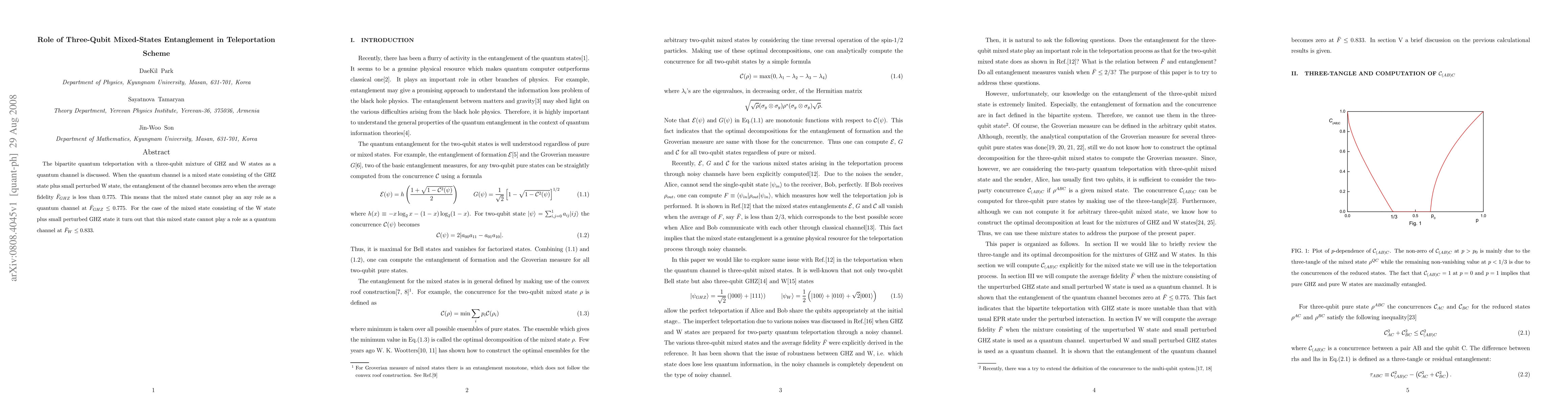 This paper investigates the use of three-qubit mixed-states, specifically GHZ and W states, in quantum teleportation. It finds that entanglement vanishes when the average fidelity for GHZ or W states falls below 0.775 and 0.833, respectively, rendering these mixed states ineffective as quantum channels.