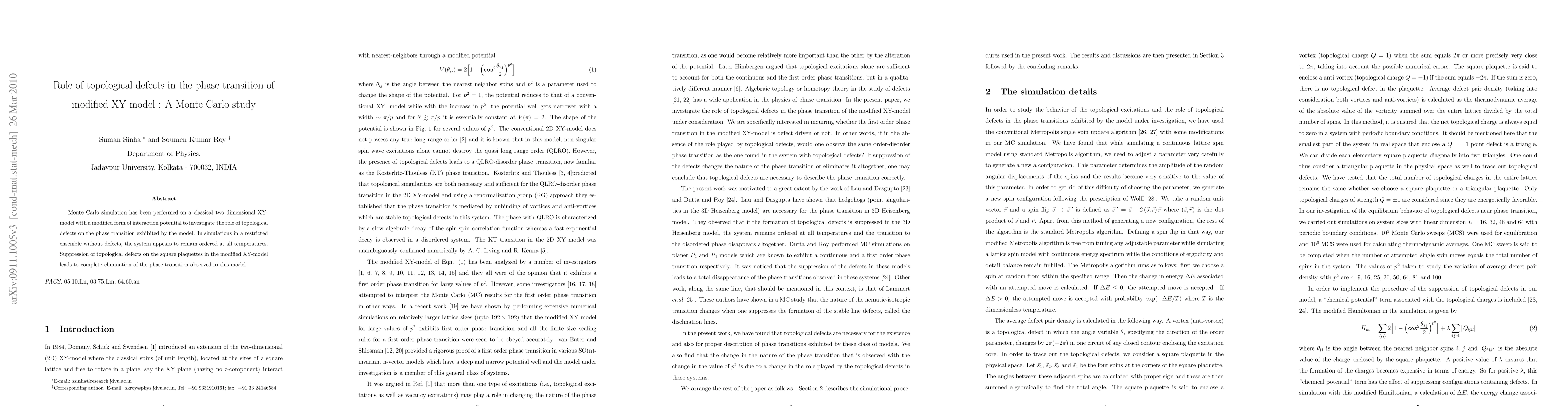 This study uses Monte Carlo simulations to explore how topological defects influence the phase transition in a modified XY model. The results show that suppressing defects eliminates the phase transition, indicating their crucial role in the model's behavior.