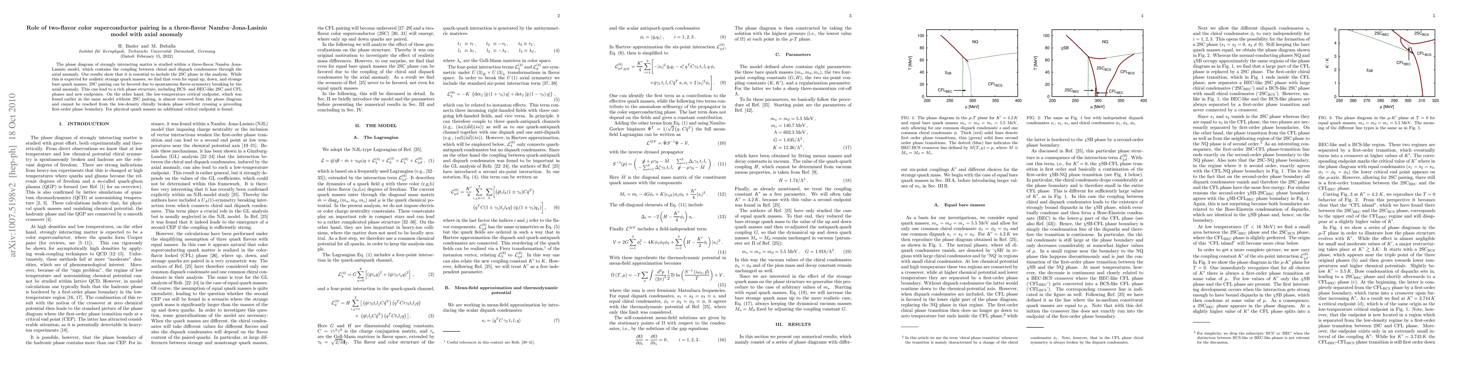 This paper explores the phase diagram of strongly interacting matter using a three-flavor Nambu-Jona-Lasinio model, emphasizing the role of two-flavor color superconductor pairing (2SC) alongside the axial anomaly. The inclusion of 2SC pairing, even with equal quark masses, reveals a complex phase structure with BCS- and BEC-like 2SC and CFL phases, and eliminates the previously identified low-temperature critical endpoint.