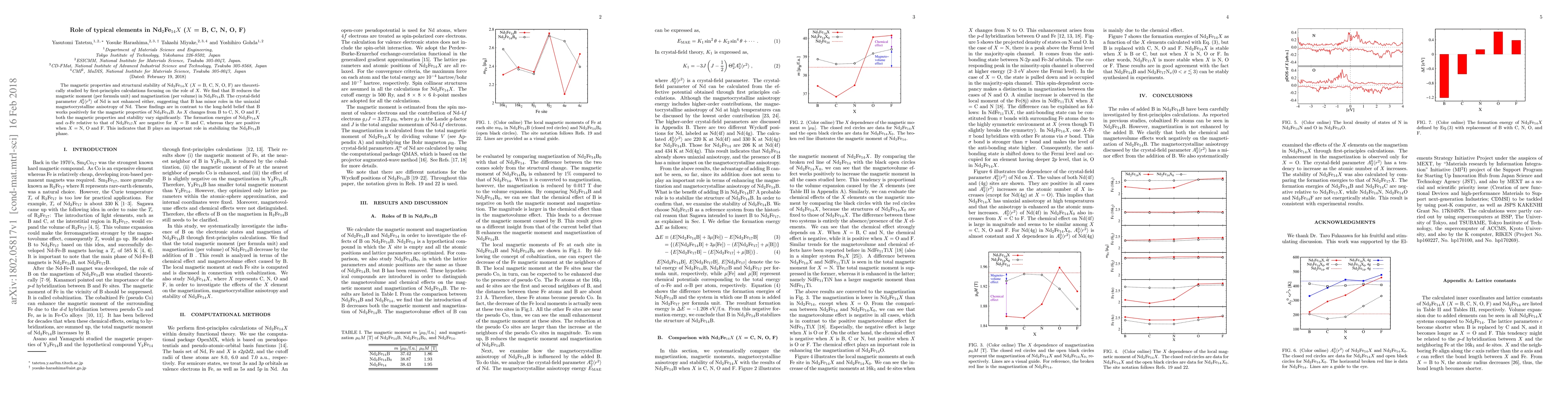 This paper investigates the impact of different elements (B, C, N, O, F) on the magnetic properties and structural stability of Nd$_{2}$Fe$_{14}X$ using first-principles calculations. It finds that boron (B) reduces magnetic moment and magnetization, contrary to its traditionally believed positive role, while other elements like carbon (C) and nitrogen (N) also affect stability and magnetic properties significantly.
