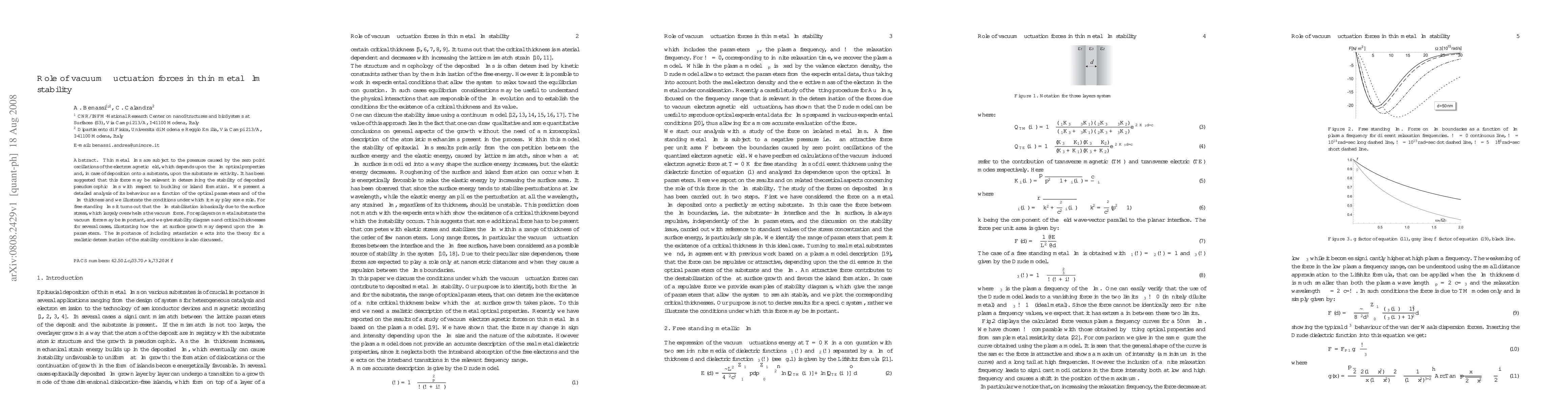 Thin metal films are subject to the pressure caused by the zero point oscillations of the electromagnetic field, which depends upon the film optical properties and, in case of deposition onto a substrate, upon the substrate reflectivity. It has been suggested that this force may be relevant in determining the stability of deposited pseudomorphic films with respect to buckling or island formation. We present a detailed analysis of its behaviour as a function of the optical parameters and of the film thickness and we illustrate the conditions under which it may play some role. For free standing films it turns out that the film stabilization is basically due to the surface stress, which largely overwhelms the vacuum force. For epilayers on metal substrate the vacuum force may be important, and we give stability diagrams and critical thicknesses for several cases, illustrating how the flat surface growth may depend upon the film parameters. The importance of including retardation effects into the theory for a realistic determination of the stability conditions is also discussed.