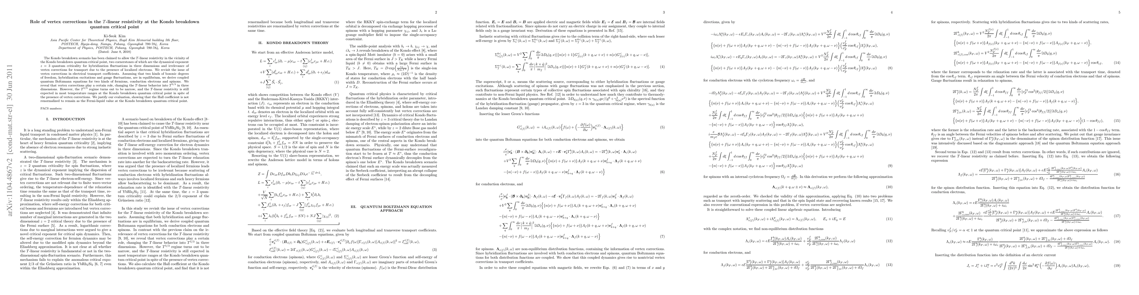 This paper revisits the role of vertex corrections in the $T$-linear resistivity near the Kondo breakdown quantum critical point, finding that while vertex corrections alter the resistivity from $T$-linear to $T^{5/3}$, the $T^{5/3}$ regime is narrow, maintaining $T$-linear resistivity in most temperature ranges. The Hall coefficient remains unchanged, supporting the Fermi-liquid nature.