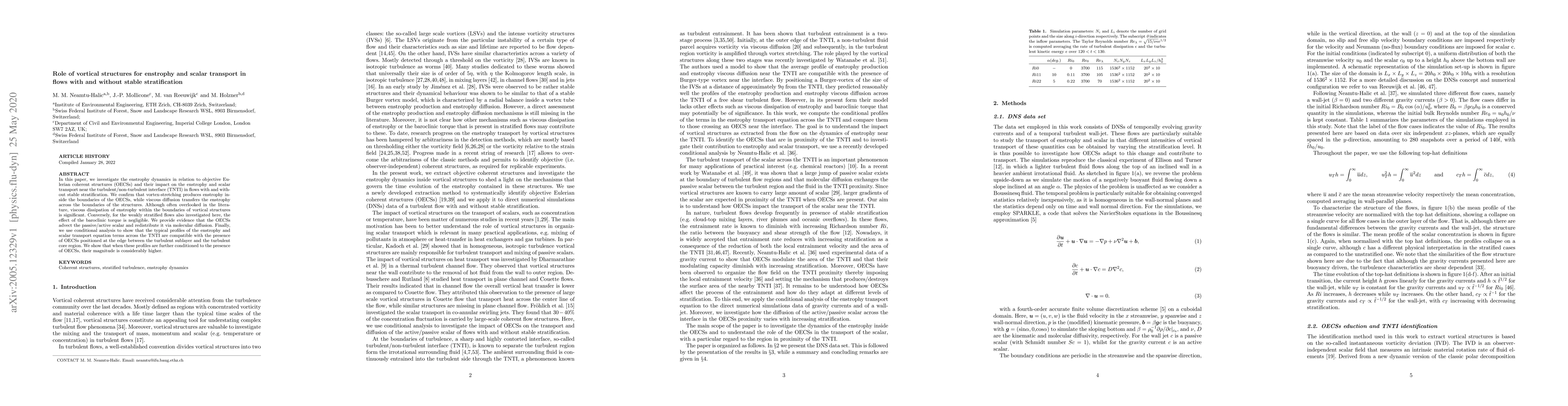 This paper examines the role of vortical structures in enstrophy dynamics and scalar transport in turbulent flows, both with and without stable stratification. It highlights the significance of vortex-stretching and viscous diffusion in enstrophy production and transfer, and the impact of objective Eulerian coherent structures (OECSs) on scalar redistribution.