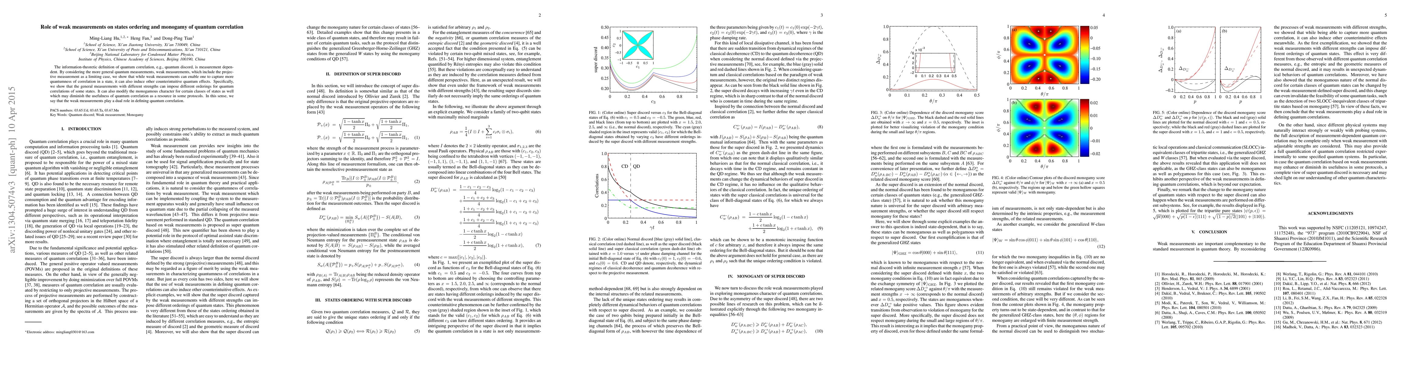 The information-theoretic definition of quantum correlation, e.g., quantum discord, is measurement dependent. By considering the more general quantum measurements, weak measurements, which include the projective measurement as a limiting case, we show that while weak measurements can enable one to capture more quantumness of correlation in a state, it can also induce other counterintuitive quantum effects. Specifically, we show that the general measurements with different strengths can impose different orderings for quantum correlations of some states. It can also modify the monogamous character for certain classes of states as well which may diminish the usefulness of quantum correlation as a resource in some protocols. In this sense, we say that the weak measurements play a dual role in defining quantum correlation.