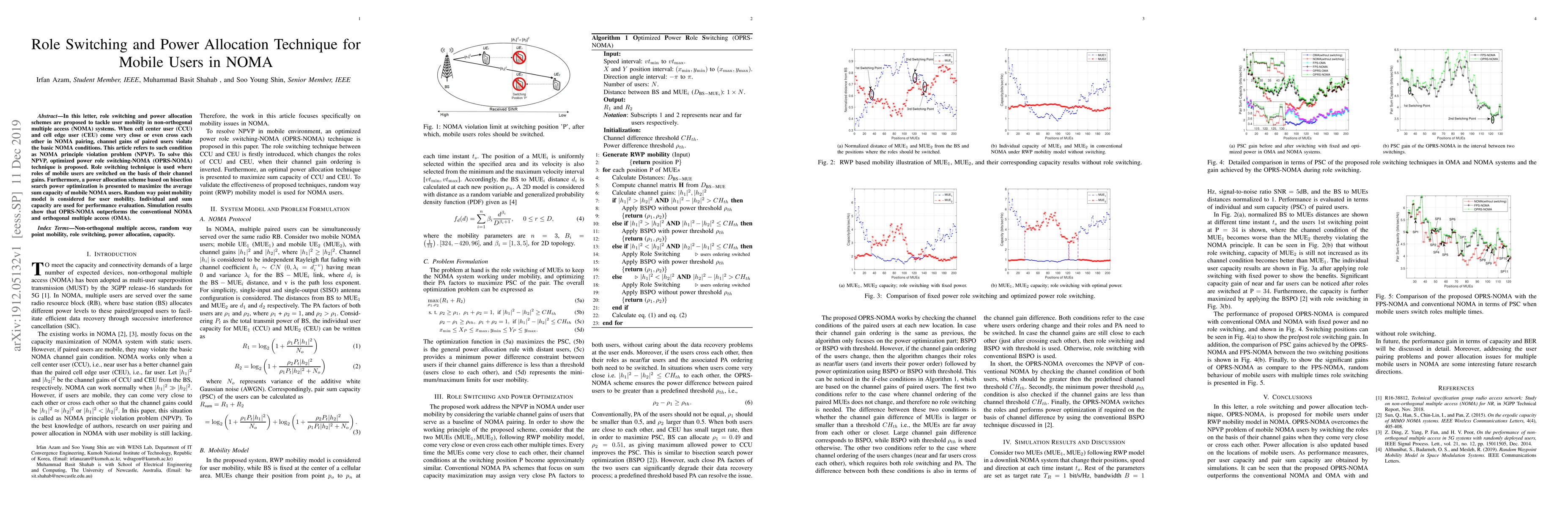 This paper proposes an optimized power role switching-NOMA (OPRS-NOMA) technique to address the NOMA principle violation problem (NPVP) in mobile users within non-orthogonal multiple access systems. The technique involves switching user roles based on channel gains and optimizing power allocation to maximize average sum capacity.
