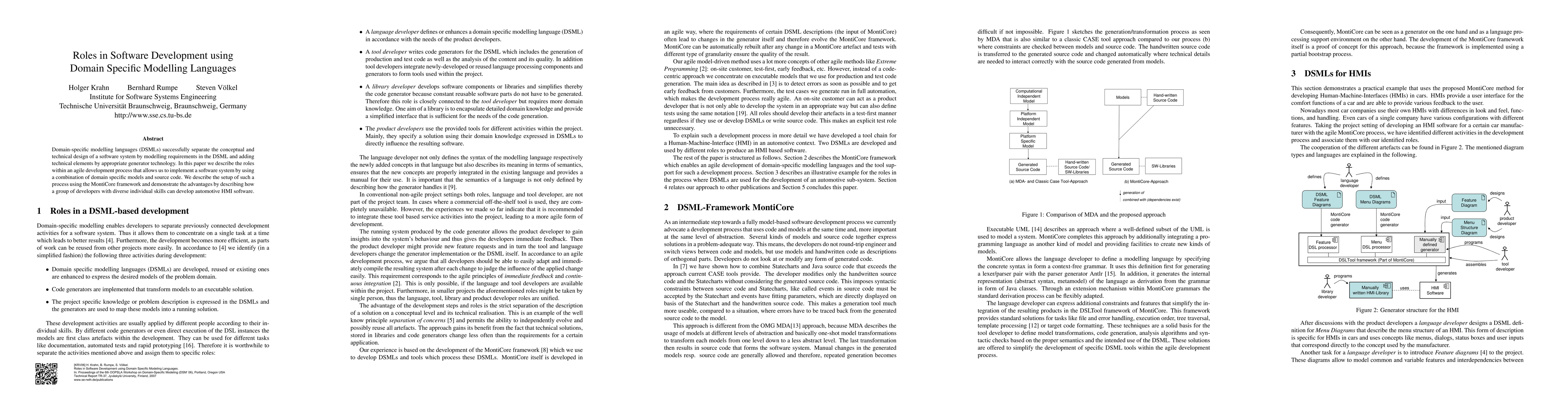 This paper explores agile development roles that integrate domain-specific modelling languages with source code for software implementation, using the MontiCore framework to illustrate how diverse developer skills can be leveraged in creating automotive HMI software.
