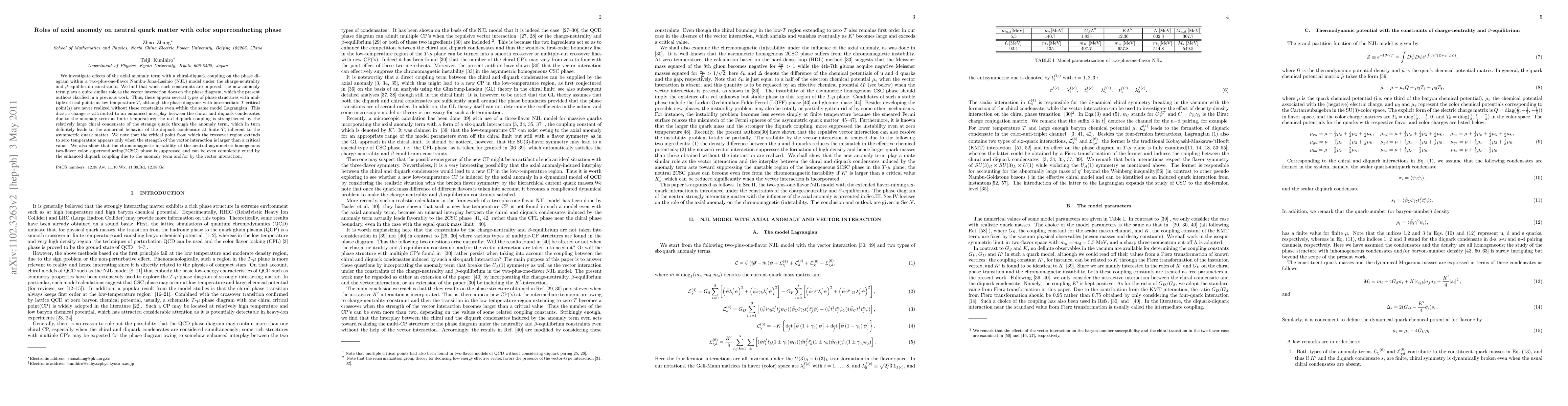 We investigate effects of the axial anomaly term with a chiral-diquark coupling on the phase diagram within a two-plus-one-flavor Nambu-Jona-Lasinio (NJL) model under the charge-neutrality and $\beta$-equilibrium constraints. We find that when such constraints are imposed, the new anomaly term plays a quite similar role as the vector interaction does on the phase diagram, which the present authors clarified in a previous work. Thus, there appear several types of phase structures with multiple critical points at low temperature $T$, although the phase diagrams with intermediate-$T$ critical point(s) are never realized without these constraints even within the same model Lagrangian. This drastic change is attributed to an enhanced interplay between the chiral and diquark condensates due to the anomaly term at finite temperature; the u-d diquark coupling is strengthened by the relatively large chiral condensate of the strange quark through the anomaly term, which in turn definitely leads to the abnormal behavior of the diquark condensate at finite $T$, inherent to the asymmetric quark matter. We note that the critical point from which the crossover region extends to zero temperature appears only when the strength of the vector interaction is larger than a critical value. We also show that the chromomagnetic instability of the neutral asymmetric homogenous two-flavor color superconducting(2CSC) phase is suppressed and can be even completely cured by the enhanced diquark coupling due to the anomaly term and/or by the vector interaction.