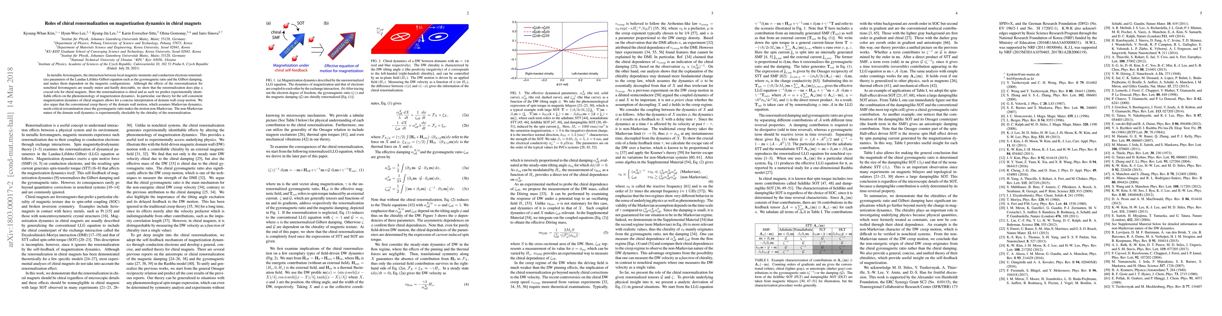 In metallic ferromagnets, the interaction between local magnetic moments and conduction electrons renormalizes parameters of the Landau-Lifshitz-Gilbert equation such as the gyromagnetic ratio and the Gilbert damping, and makes them dependent on the magnetic configurations. Although the effects of the renormalization for nonchiral ferromagnets are usually minor and hardly detectable, we show that the renormalization does play a crucial role for chiral magnets. Here the renormalization is chiral and as such we predict experimentally identifiable effects on the phenomenology of magnetization dynamics. In particular, our theory for the self-consistent magnetization dynamics of chiral magnets allows for a concise interpretation of domain wall creep motion. We also argue that the conventional creep theory of the domain wall motion, which assumes Markovian dynamics, needs critical reexamination since the gyromagnetic ratio makes the motion non-Markovian. The non-Markovian nature of the domain wall dynamics is experimentally checkable by the chirality of the renormalization.