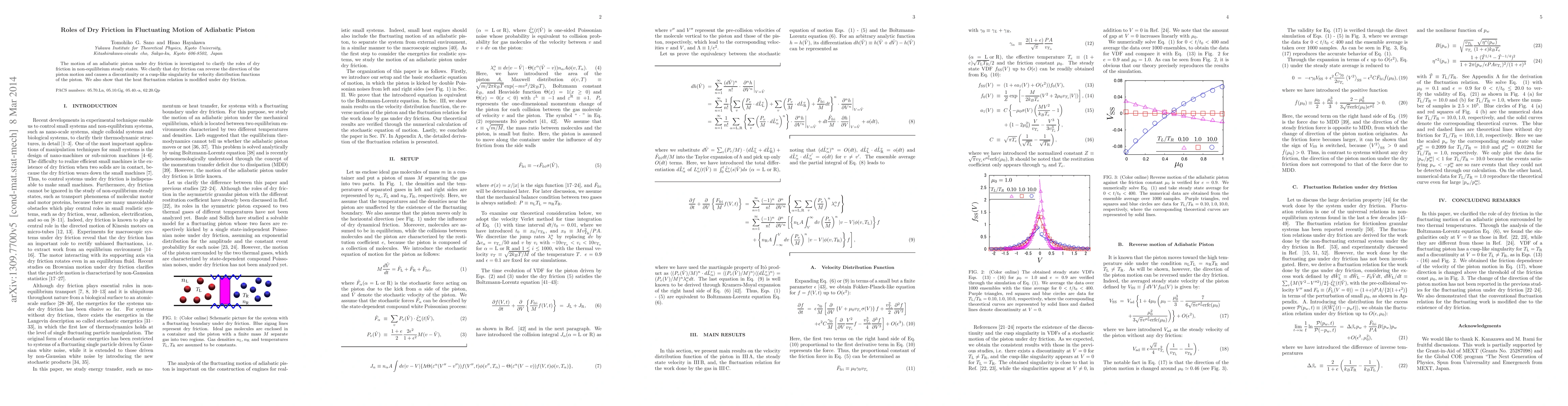 This paper investigates the impact of dry friction on the fluctuating motion of an adiabatic piston, demonstrating that dry friction can reverse piston motion and create singularities in velocity distributions, while also modifying the heat fluctuation relation.
