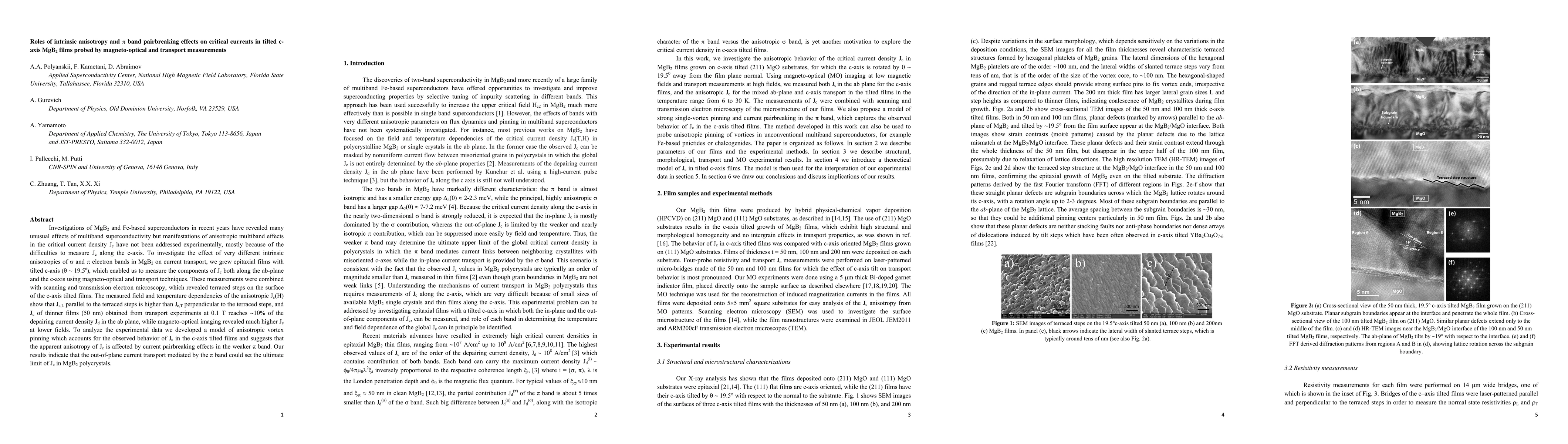 Investigations of MgB2 and Fe-based superconductors in recent years have revealed many unusual effects of multiband superconductivity but manifestations of anisotropic multiband effects in the critical current density Jc have not been addressed experimentally, mostly because of the difficulties to measure Jc along the c-axis. To investigate the effect of very different intrinsic anisotropies of sigma and pi electron bands in MgB2 on current transport, we grew epitaxial films with tilted c-axis (THETA ~ 19.5{\deg}), which enabled us to measure the components of Jc both along the ab-plane and the c-axis using magneto-optical and transport techniques. These measurements were combined with scanning and transmission electron microscopy, which revealed terraced steps on the surface of the c-axis tilted films. The measured field and temperature dependencies of the anisotropic Jc(H) show that Jc,L parallel to the terraced steps is higher than Jc,T perpendicular to the terraced steps, and Jc of thinner films (50 nm) obtained from transport experiments at 0.1 T reaches ~10% of the depairing current density Jd in the ab plane, while magneto-optical imaging revealed much higher Jc at lower fields. To analyze the experimental data we developed a model of anisotropic vortex pinning which accounts for the observed behavior of Jc in the c-axis tilted films and suggests that the apparent anisotropy of Jc is affected by current pairbreaking effects in the weaker {\pi} band. Our results indicate that the out-of-plane current transport mediated by the {\pi} band could set the ultimate limit of Jc in MgB2 polycrystals.