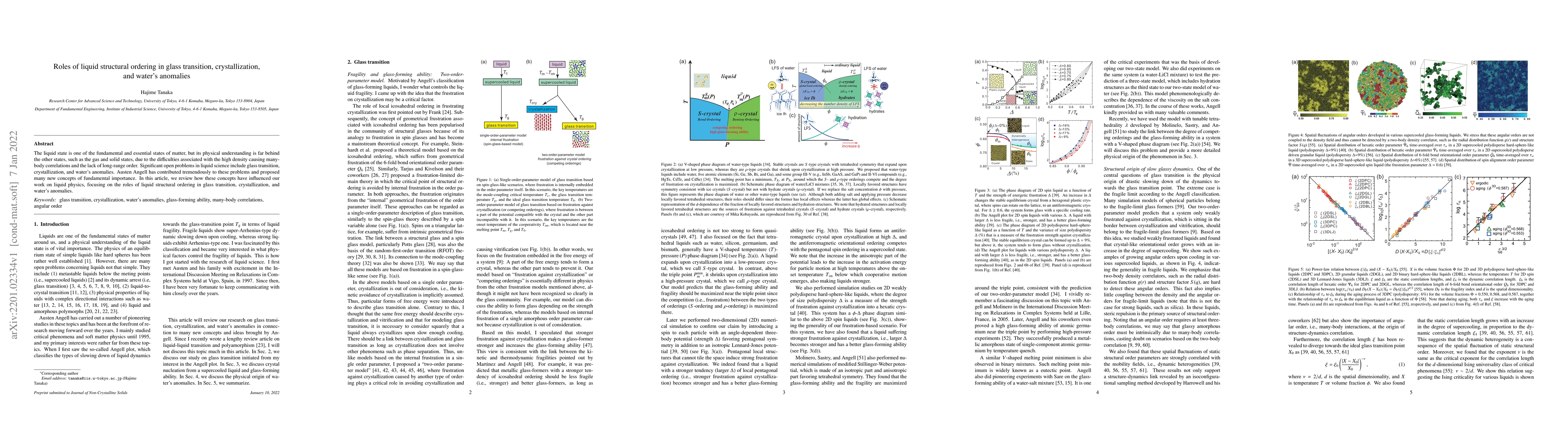 The liquid state is one of the fundamental and essential states of matter, but its physical understanding is far behind the other states, such as the gas and solid states, due to the difficulties associated with the high density causing many-body correlations and the lack of long-range order. Significant open problems in liquid science include glass transition, crystallization, and water's anomalies. Austen Angell has contributed tremendously to these problems and proposed many new concepts of fundamental importance. In this article, we review how these concepts have influenced our work on liquid physics, focusing on the roles of liquid structural ordering in glass transition, crystallization, and water's anomalies.