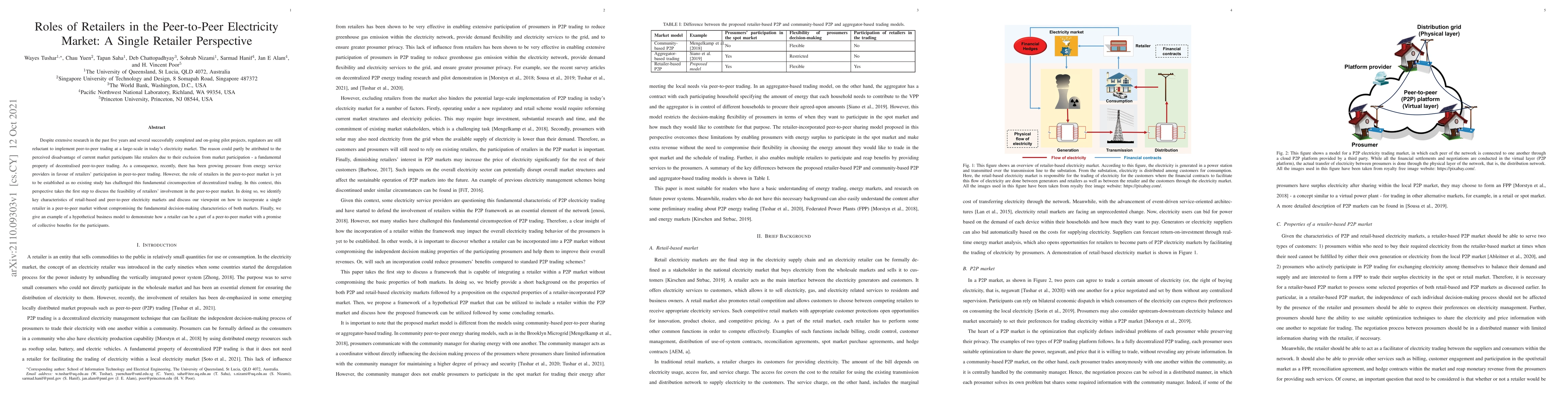 Despite extensive research in the past five years and several successfully completed and on-going pilot projects, regulators are still reluctant to implement peer-to-peer trading at a large-scale in today's electricity market. The reason could partly be attributed to the perceived disadvantage of current market participants like retailers due to their exclusion from market participation - a fundamental property of decentralised peer-to-peer trading. As a consequence, recently, there has been growing pressure from energy service providers in favour of retailers' participation in peer-to-peer trading. However, the role of retailers in the peer-to-peer market is yet to be established as no existing study has challenged this fundamental circumspection of decentralized trading. In this context, this perspective takes the first step to discuss the feasibility of retailers' involvement in the peer-to-peer market. In doing so, we identify key characteristics of retail-based and peer-to-peer electricity markets and discuss our viewpoint on how to incorporate a single retailer in a peer-to-peer market without compromising the fundamental decision-making characteristics of both markets. Finally, we give an example of a hypothetical business model to demonstrate how a retailer can be a part of a peer-to-peer market with a promise of collective benefits for the participants.