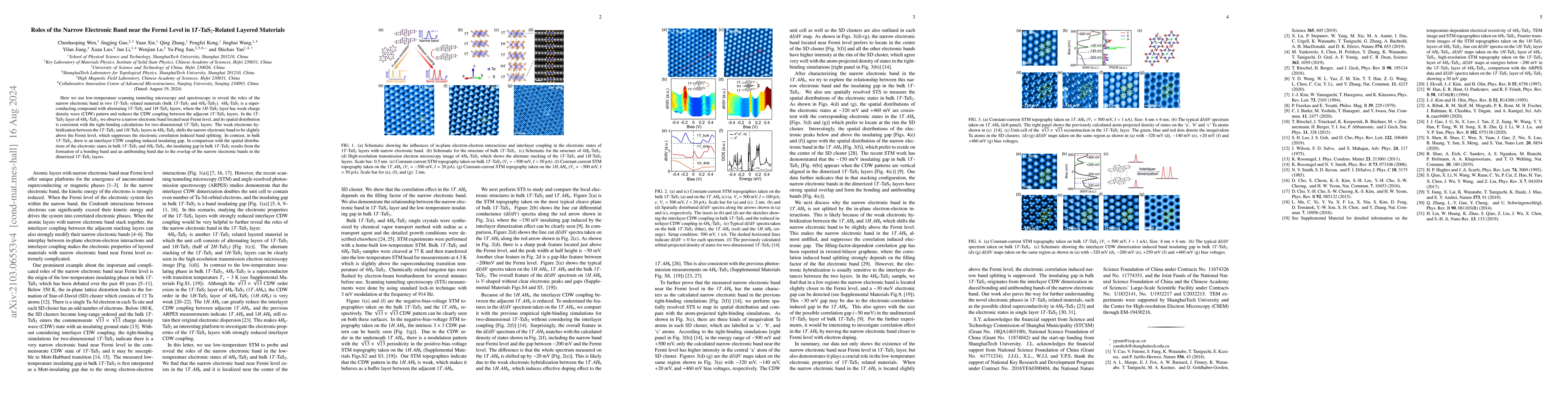 Here we use low-temperature scanning tunneling microscopy and spectroscopy to reveal the roles of the narrow electronic band in two 1$T$-TaS$_2$ related materials (bulk 1$T$-TaS$_2$ and 4$H_{\rm b}$-TaS$_2$). 4$H_{\rm b}$-TaS$_2$ is a superconducting compound with alternating 1$T$-TaS$_2$ and 1$H$-TaS$_2$ layers, where the 1$H$-TaS$_2$ layer has weak charge density wave (CDW) pattern and reduces the CDW coupling between the adjacent 1$T$-TaS$_2$ layers. In the 1$T$-TaS$_2$ layer of 4$H_{\rm b}$-TaS$_2$, we observe a narrow electronic band located near Fermi level, and its spatial distribution is consistent with the tight-binding calculations for two-dimensional 1$T$-TaS$_2$ layers. The weak electronic hybridization between the 1$T$-TaS$_2$ and 1$H$-TaS$_2$ layers in 4$H_{\rm b}$-TaS$_2$ shifts the narrow electronic band to be slightly above the Fermi level, which suppresses the electronic correlation induced band splitting. In contrast, in bulk 1$T$-TaS$_2$, there is an interlayer CDW coupling induced insulating gap. In comparison with the spatial distributions of the electronic states in bulk 1$T$-TaS$_2$ and 4$H_{\rm b}$-TaS$_2$, the insulating gap in bulk 1$T$-TaS$_2$ results from the formation of a bonding band and an antibonding band due to the overlap of the narrow electronic bands in the dimerized 1$T$-TaS$_2$ layers.