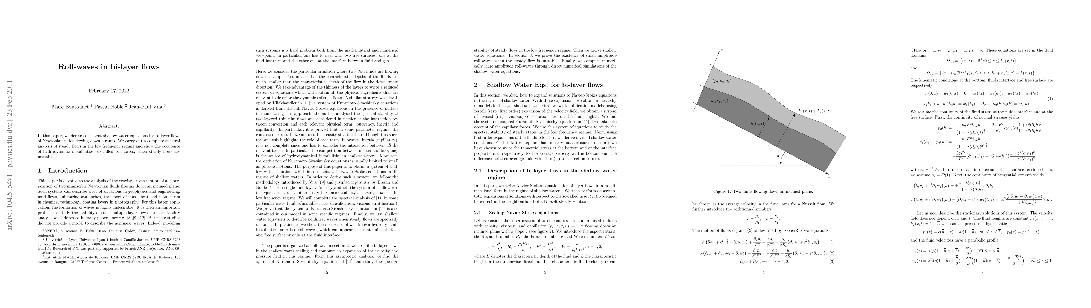Researchers derive equations for bi-layer flows of Newtonian fluids and find that under certain conditions, steady flows can become unstable and produce roll-waves, a type of hydrodynamic instability.
