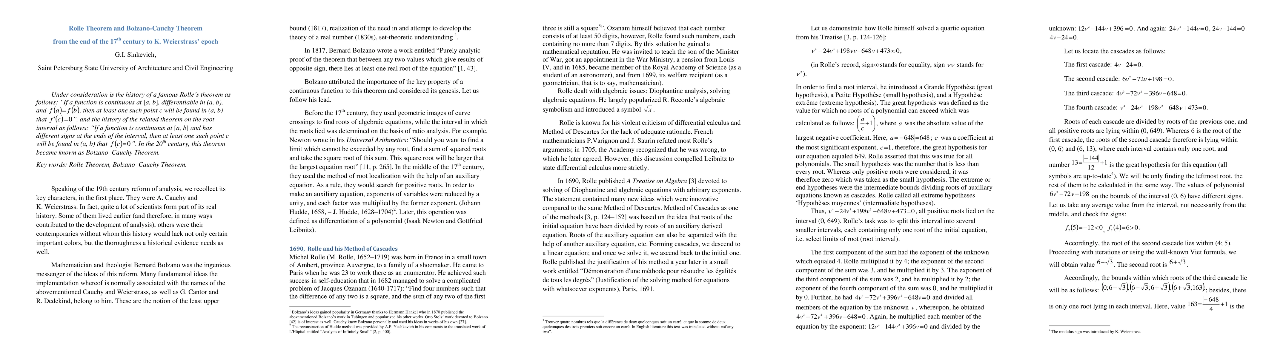 A history of two Rolle Theorems, about the root of derivative and about root interval from 1690 till the end of XIX century.