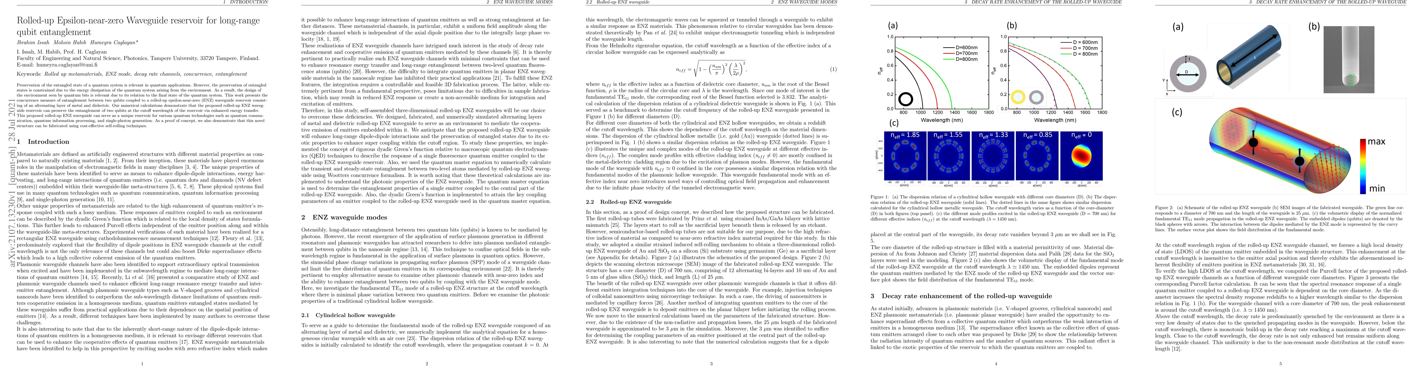 Preservation of the entangled state of a quantum system is relevant in quantum applications. However, the preservation of entangled states is constrained due to the energy dissipation of the quantum system arising from the environment. As a result, the design of the environment seen by quantum bits is relevant due to its relation to the final state of the quantum system. This work presents the concurrence measure of entanglement between two qubits coupled to a rolled-up epsilon-near-zero (ENZ) waveguide reservoir consisting of an alternating layer of metal and dielectric. Our numerical calculations demonstrate that the proposed rolled-up ENZ waveguide reservoir can preserve the entanglement of two qubits at the cutoff wavelength of the reservoir via enhanced energy transfer. This proposed rolled-up ENZ waveguide can serve as a unique reservoir for various quantum technologies such as quantum communication, quantum information processing, and single-photon generation. As a proof of concept, we also demonstrate that this novel structure can be fabricated using cost-effective self-rolling techniques.