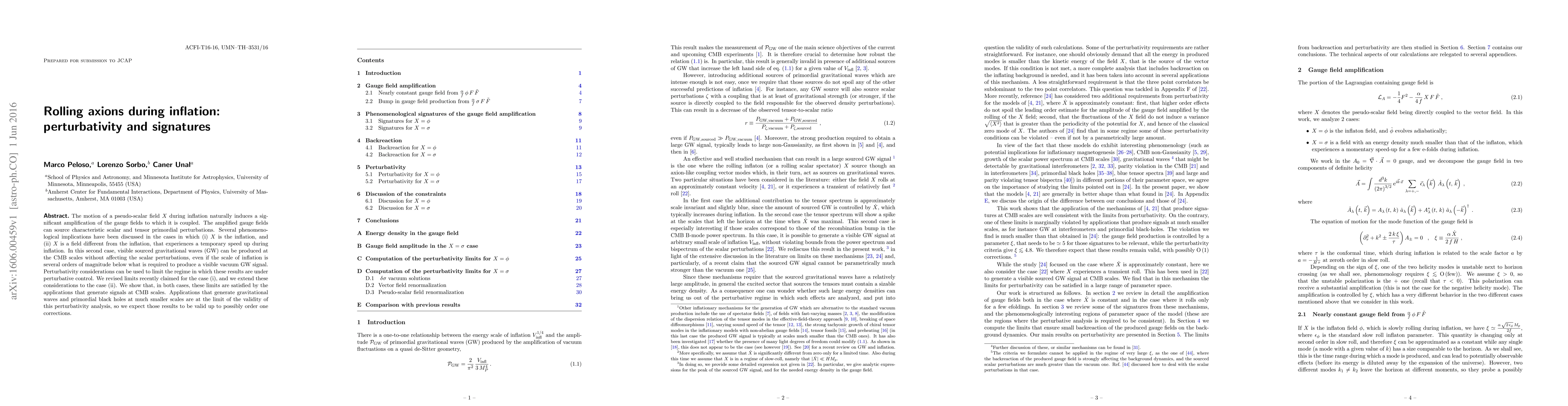 This paper investigates the perturbativity and signatures of a pseudo-scalar field $X$ during inflation, showing that it can amplify gauge fields and produce primordial perturbations. It finds that $X$ can generate CMB-scale gravitational waves without affecting scalar perturbations, while remaining within perturbative limits.