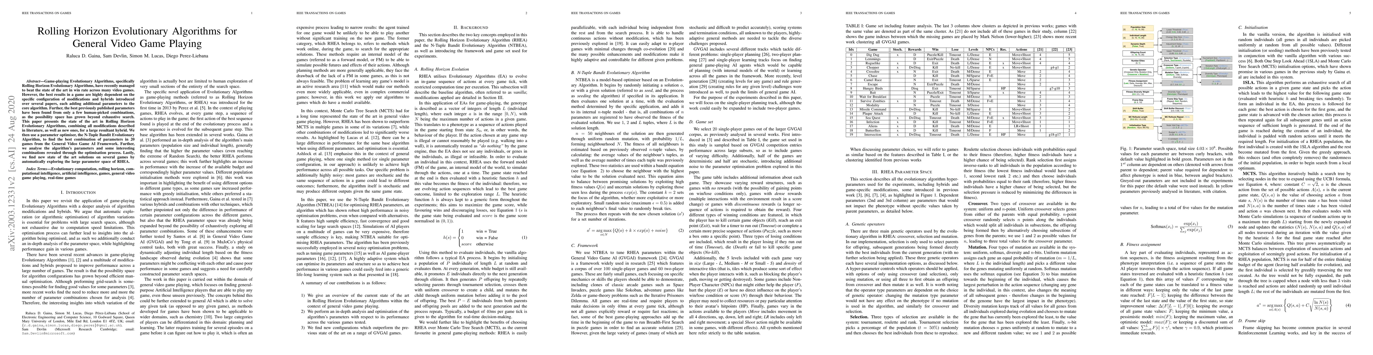 This paper combines various modifications and new elements into a hybrid Rolling Horizon Evolutionary Algorithm (RHEA) to achieve the state of the art in video game playing. It employs the N-Tuple Bandit Evolutionary Algorithm to optimize parameters across 20 games, discovering new best solutions and revealing insights into effective parameter combinations.