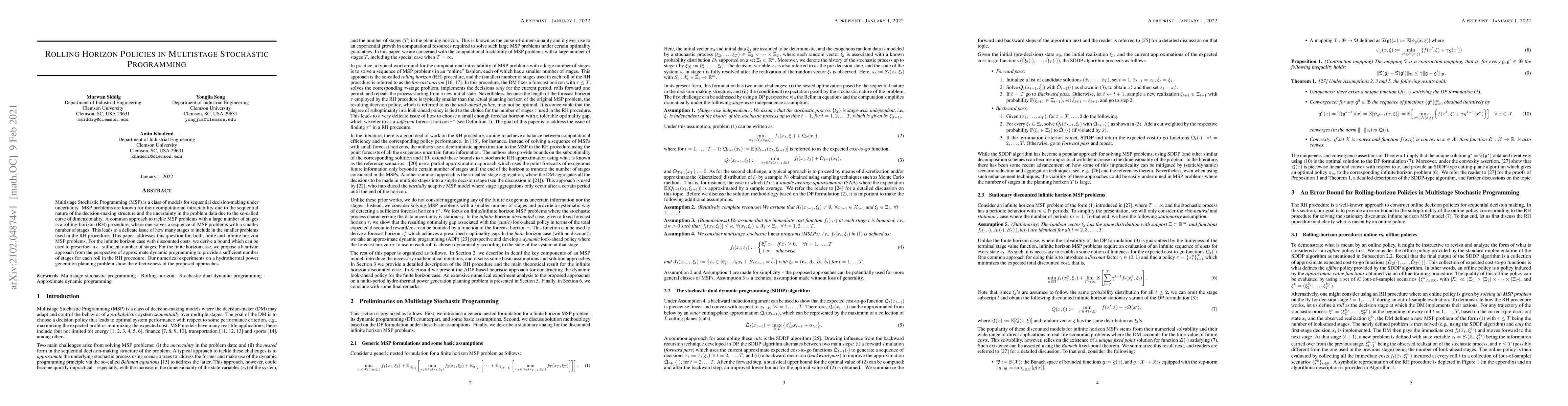 This paper explores the application of rolling horizon policies in multistage stochastic programming to manage computational challenges. It proposes methods to determine the optimal number of stages in rolling horizon procedures for both finite and infinite horizon scenarios, demonstrating effectiveness through numerical experiments on a hydrothermal power generation planning problem.