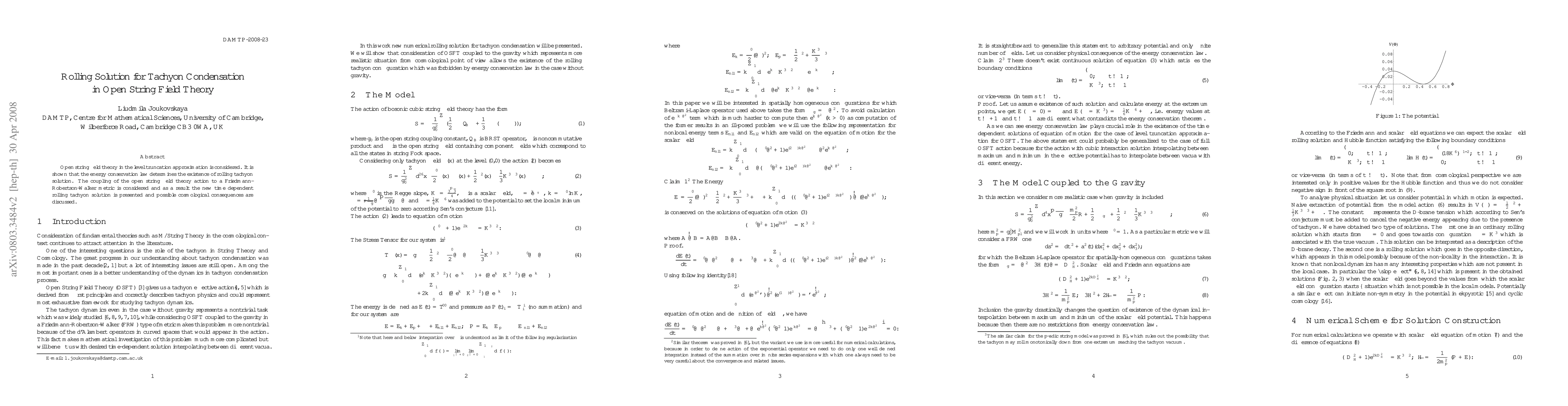 This paper presents a rolling tachyon solution in open string field theory under level truncation approximation, showing that energy conservation underpins its existence. It also examines the theory's coupling to a Friedmann-Robertson-Walker metric, introducing a new time-dependent rolling tachyon solution and discussing its potential cosmological implications.