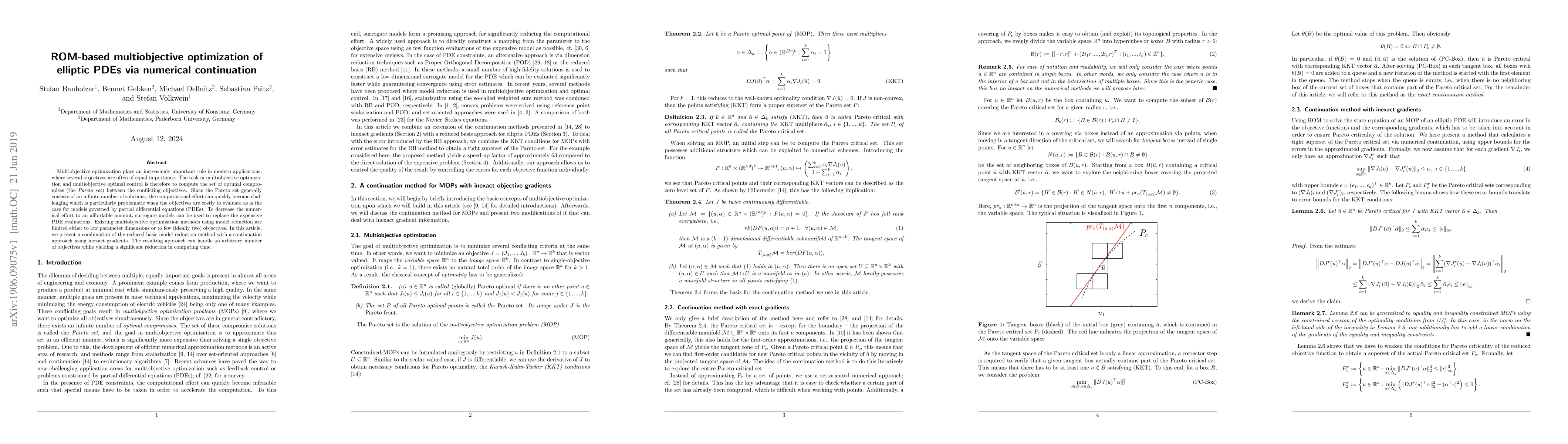 This paper proposes a ROM-based method combining reduced basis model reduction with numerical continuation for multiobjective optimization of elliptic PDEs, enabling efficient computation of the Pareto set even when objectives are costly to evaluate. The approach effectively handles multiple objectives and significantly reduces computational effort.